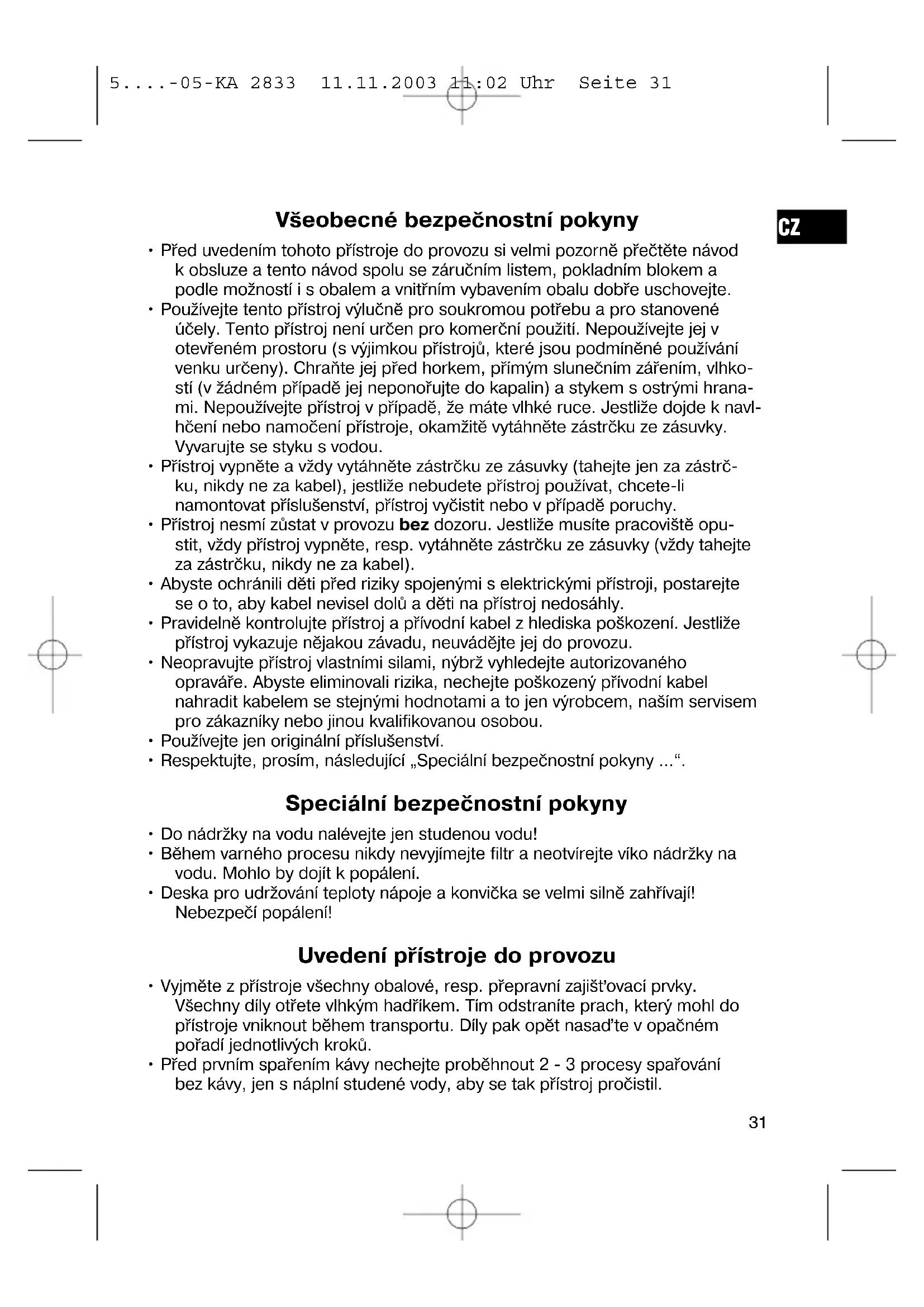 5....-05-KA 2833 11.11.2003 11:02 Uhr Seite 30Všeobecné bezpečnostní pokyny