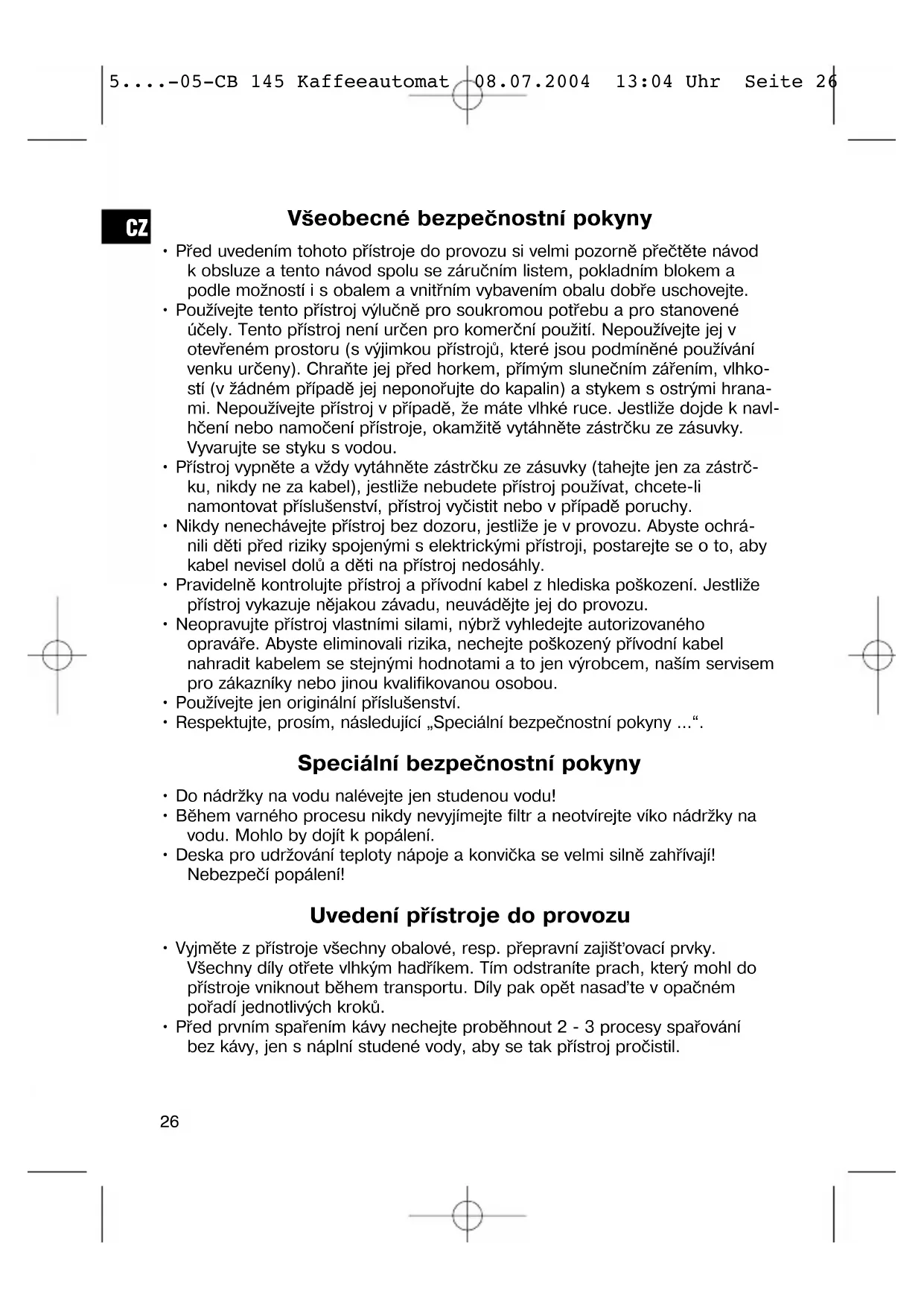 5....-05-CB 145 Kaffeeautomat 08.07.2004 13:04 Uhr Seite 25Všeobecné bezpečnostní pokyny