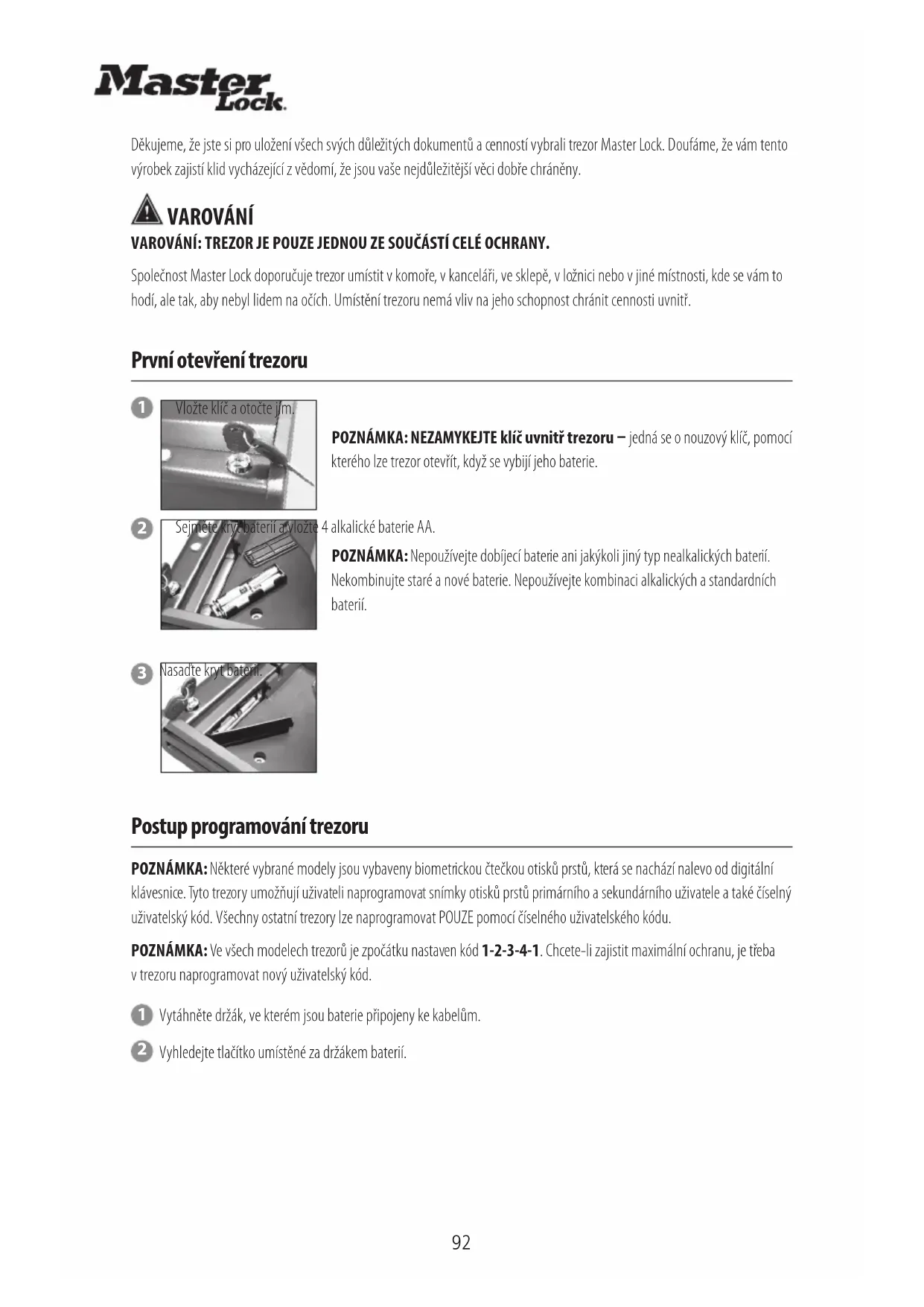 Děkujeme, že jste si pro uložení všech svých důležitých dokumentů a cenností vybrali trezor Master Lock. Doufáme, že vám tento výrobek zajistí klid vycházející z vědomí, že jsou vaše nejdůležitější věci dobře chráněny.