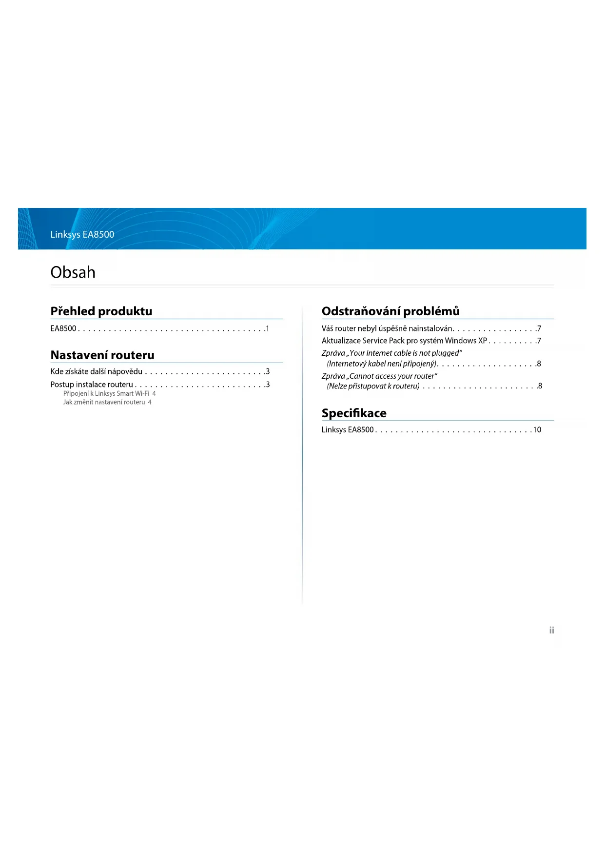 - Připojení k Linksys Smart Wi-Fi 4 Jak změnit nastavení routeru 4 Odstraňování problémů Váš router nebyl úspěšně nainstalován p. 7