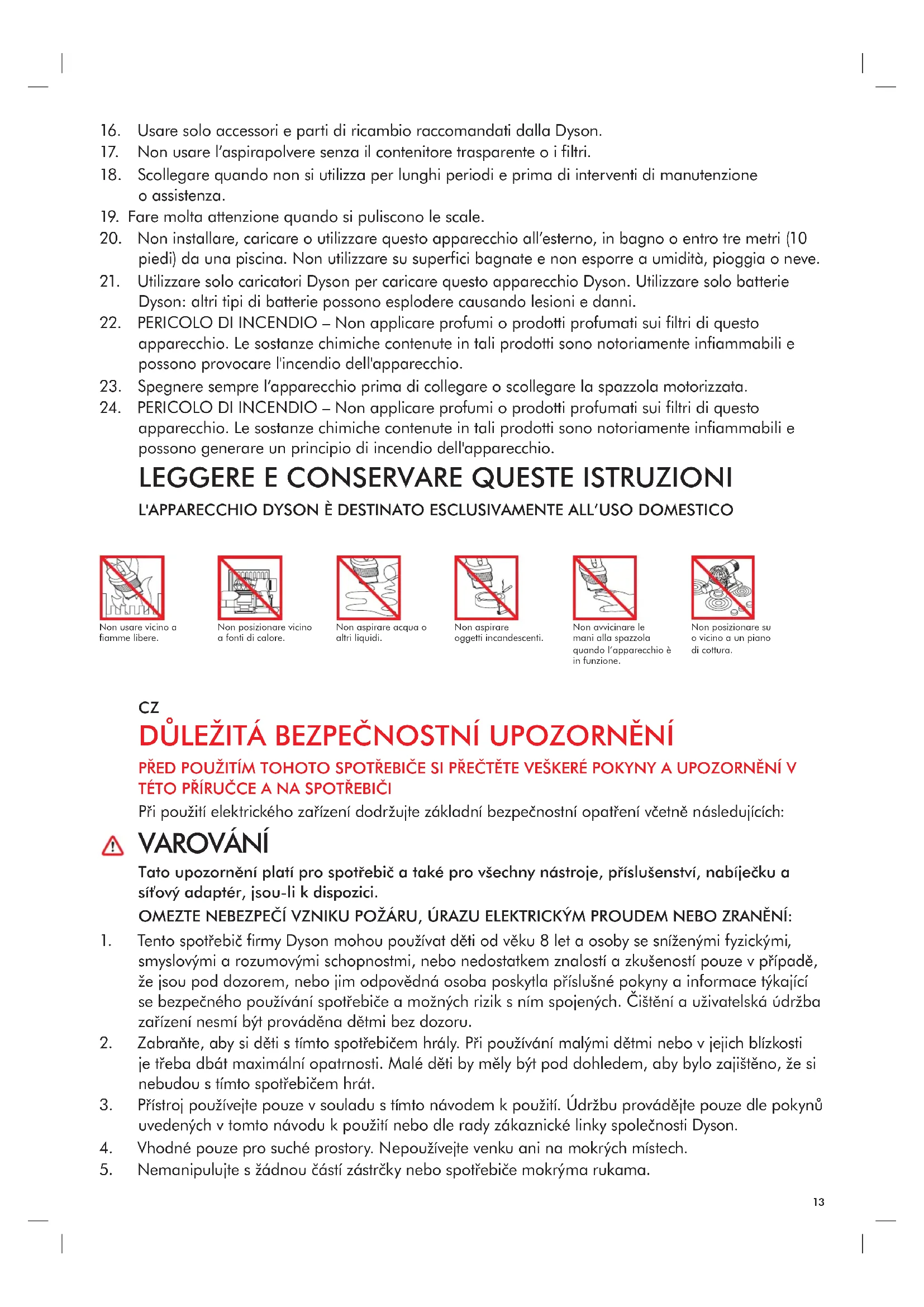 16. Používejte pouze příslušenství a náhradní díly doporučené společností Dyson.
