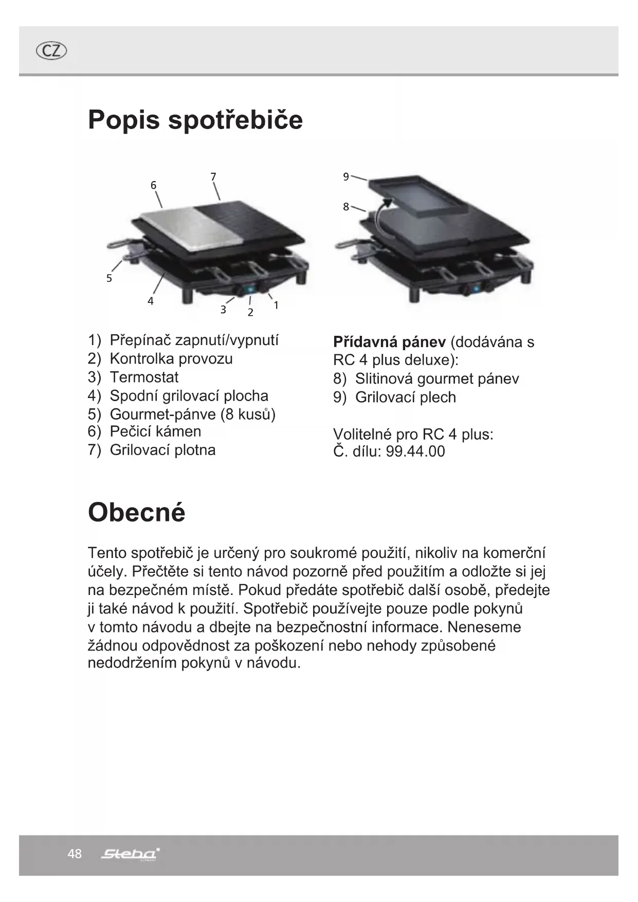 RC 4 plus - Přístroj na fondue, raclette a wok STEBA - Bezplatný návod k obsluze