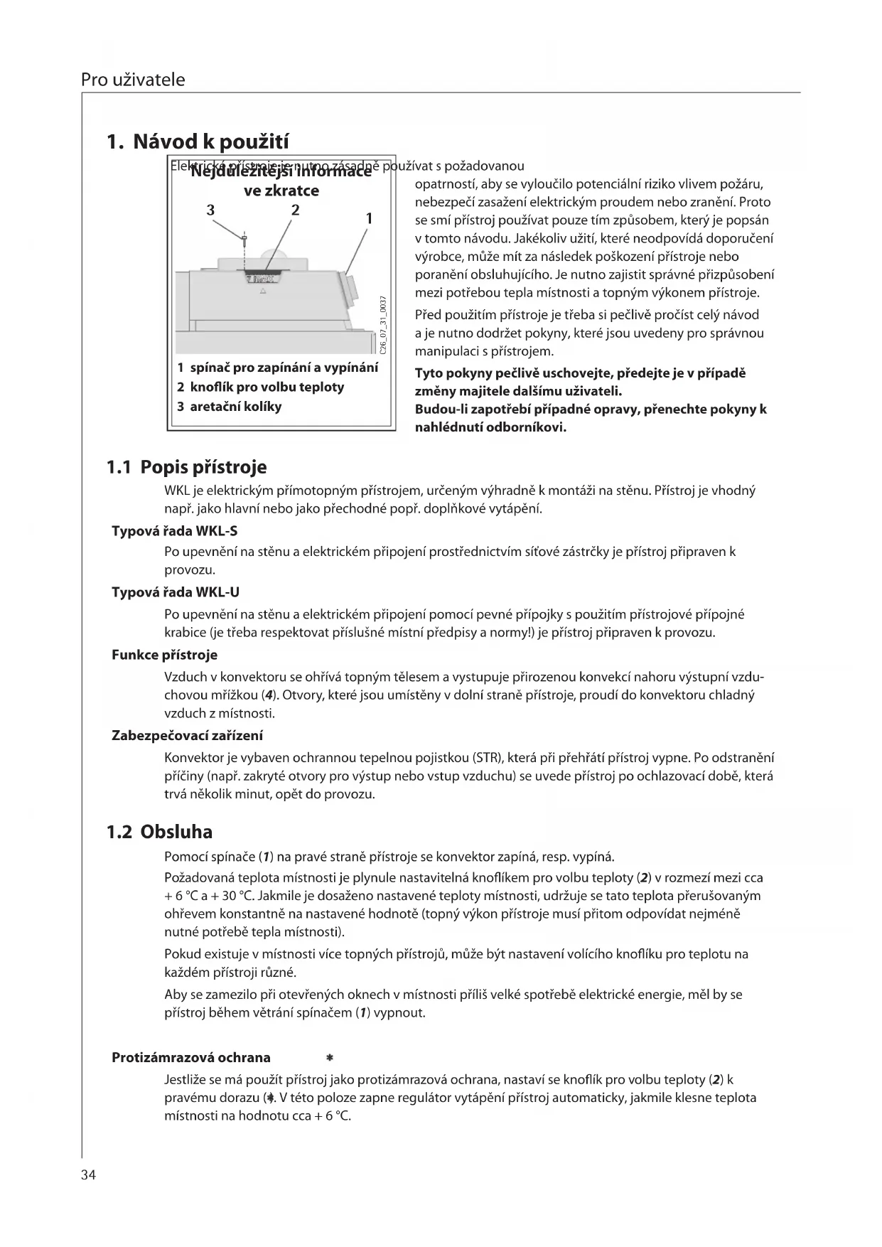 WKL je elektrickým prímotopným prístrojem, určeným vyhradné k montáži na stěnu. Prístroj je vhodné např. jak hlavní nebo jaků prechodné popř. doplěkové vytápéné.