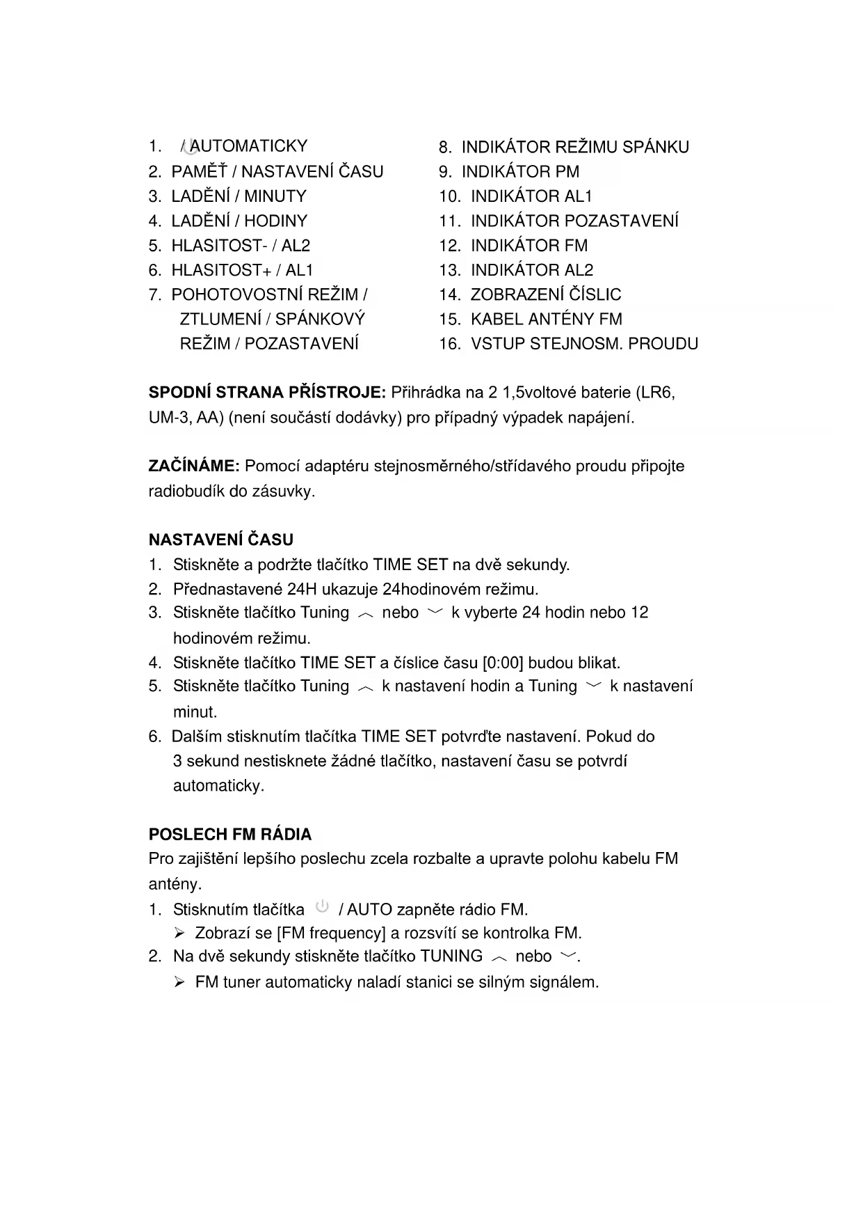 - PAMĚT / NASTAVENÍ ČASU 9. INDIKÁTOR PM