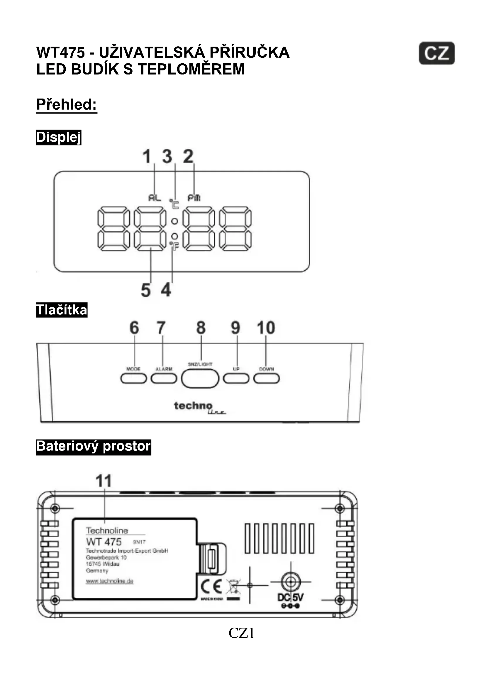 NÁVOD K OBSLUZE WT 475 TECHNOLINE
