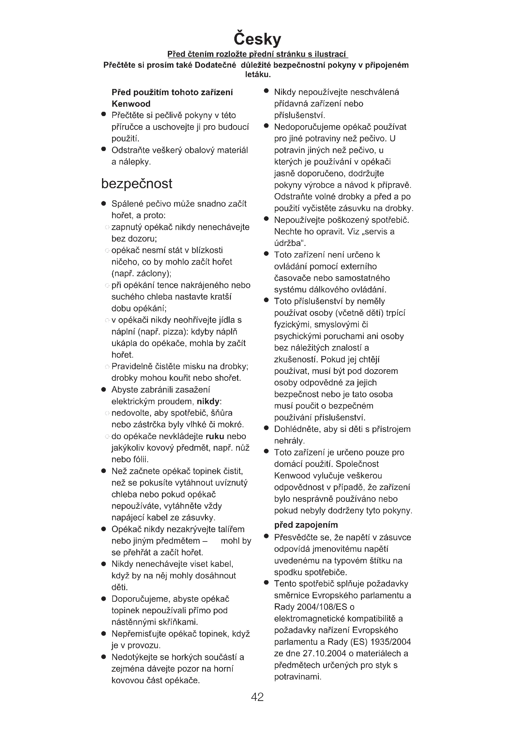 Ïesky P¡ed ïtením rozlo¥te p¡ední stránku s ilustrací Přečtěte si prosím také Dodatečné důležité bezpečnostní pokyny v připojeném letáku.p¡ed prvním pou¥itím