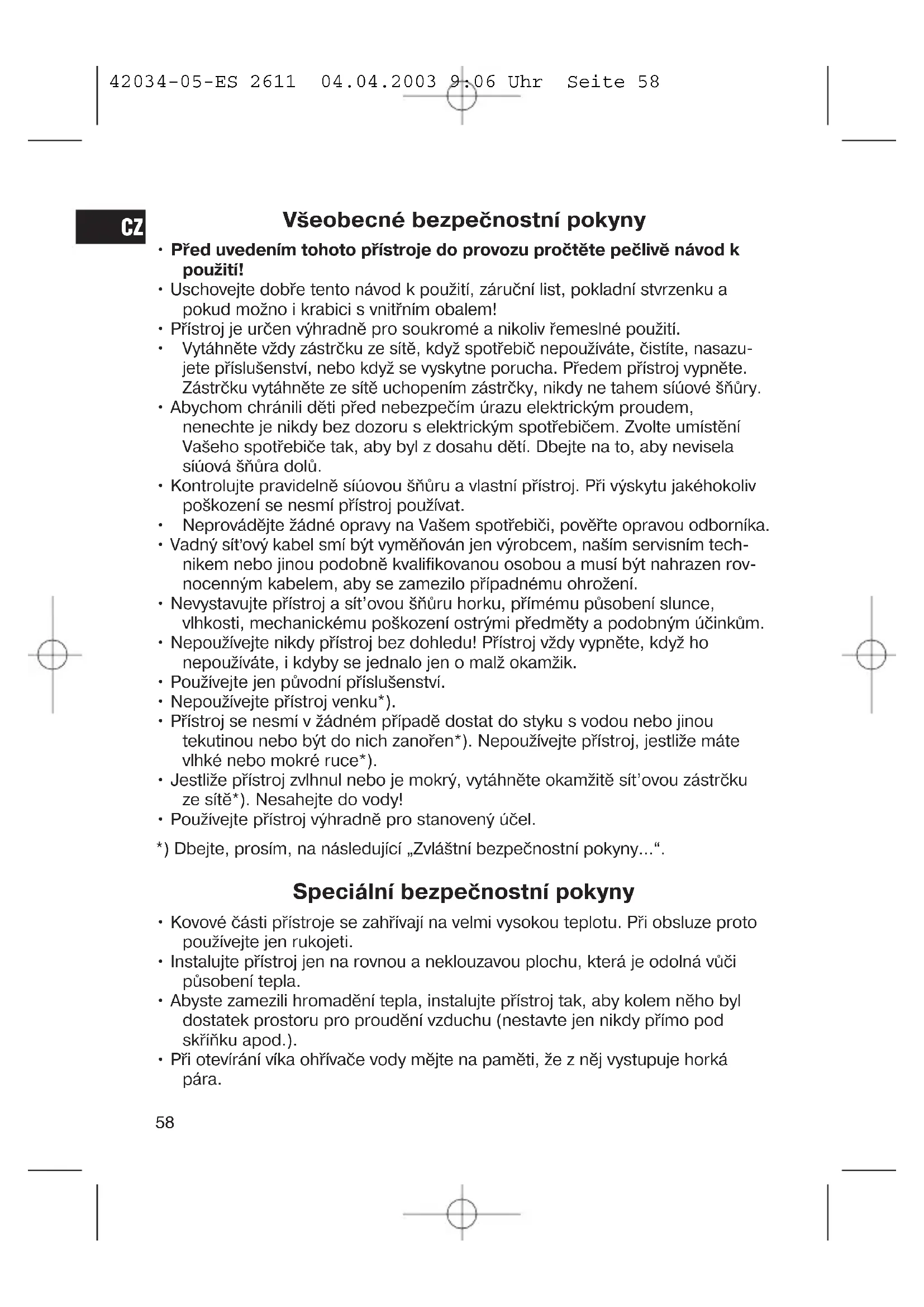 42034-05-ES 2611 04.04.2003 9:06 Uhr Seite 57Všeobecné bezpečnostní pokyny