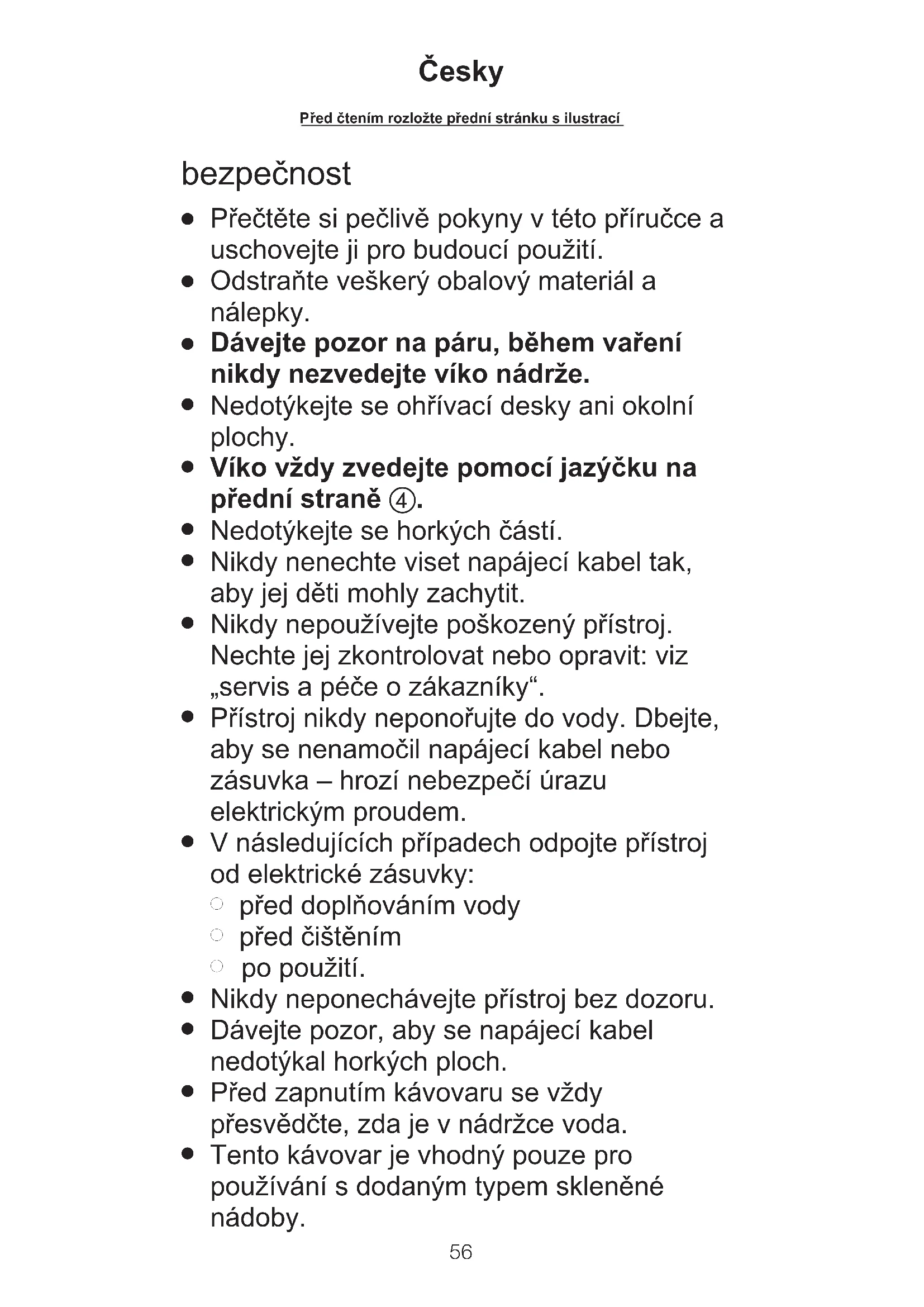¡ed ïtením rozlo¥te p¡ední stránku s ilustrací Ïesky bezpečnost