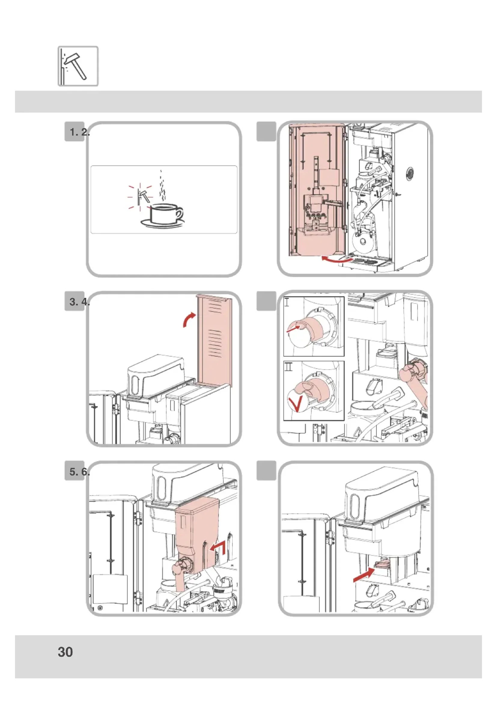 7. Instruktážni stranky seznázornenymi postupy (cervené oznaceni) a symboly (poznámky/zákazy).
