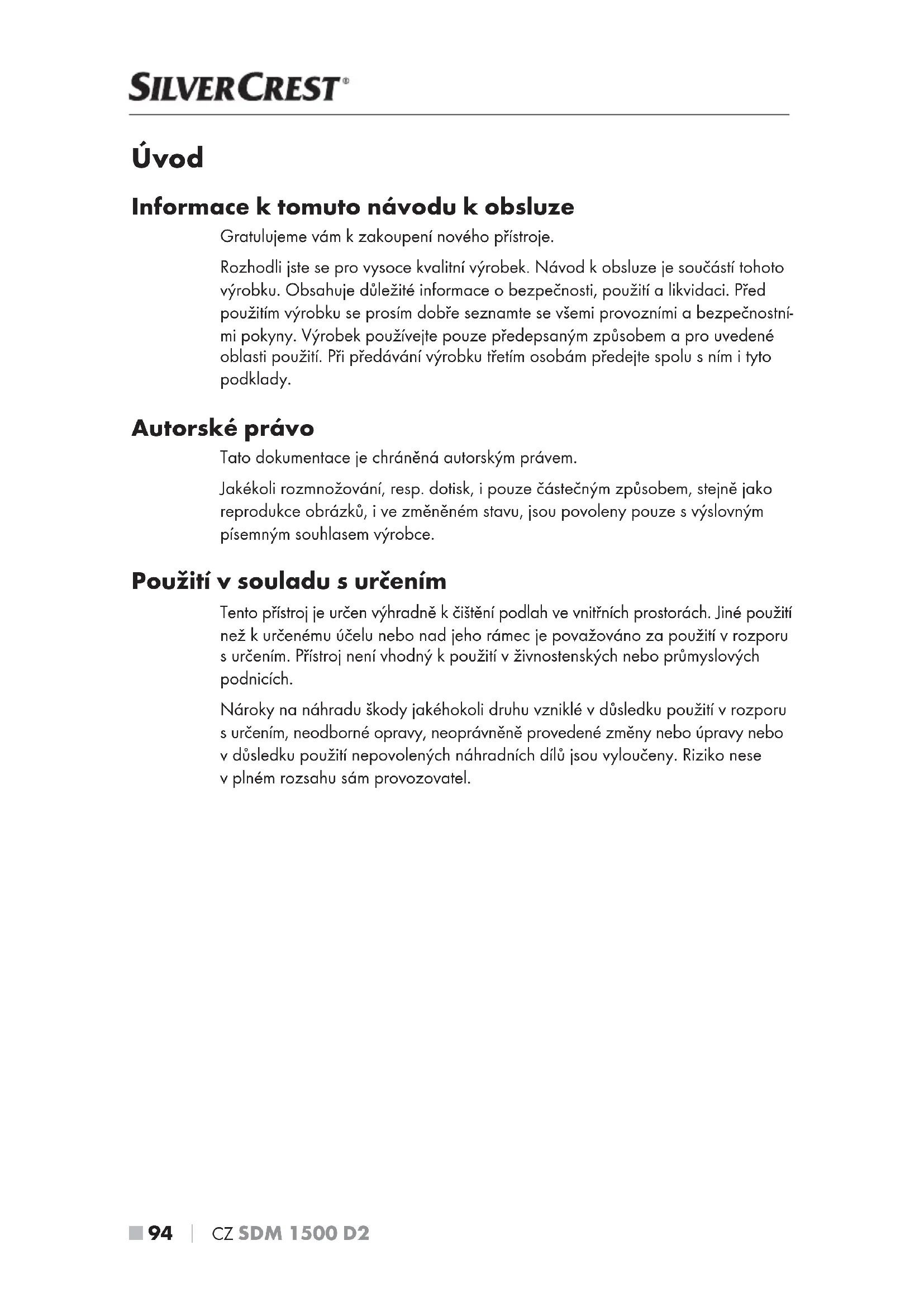 NÁVOD K OBSLUZE SDM 1500 B2 SILVERCREST