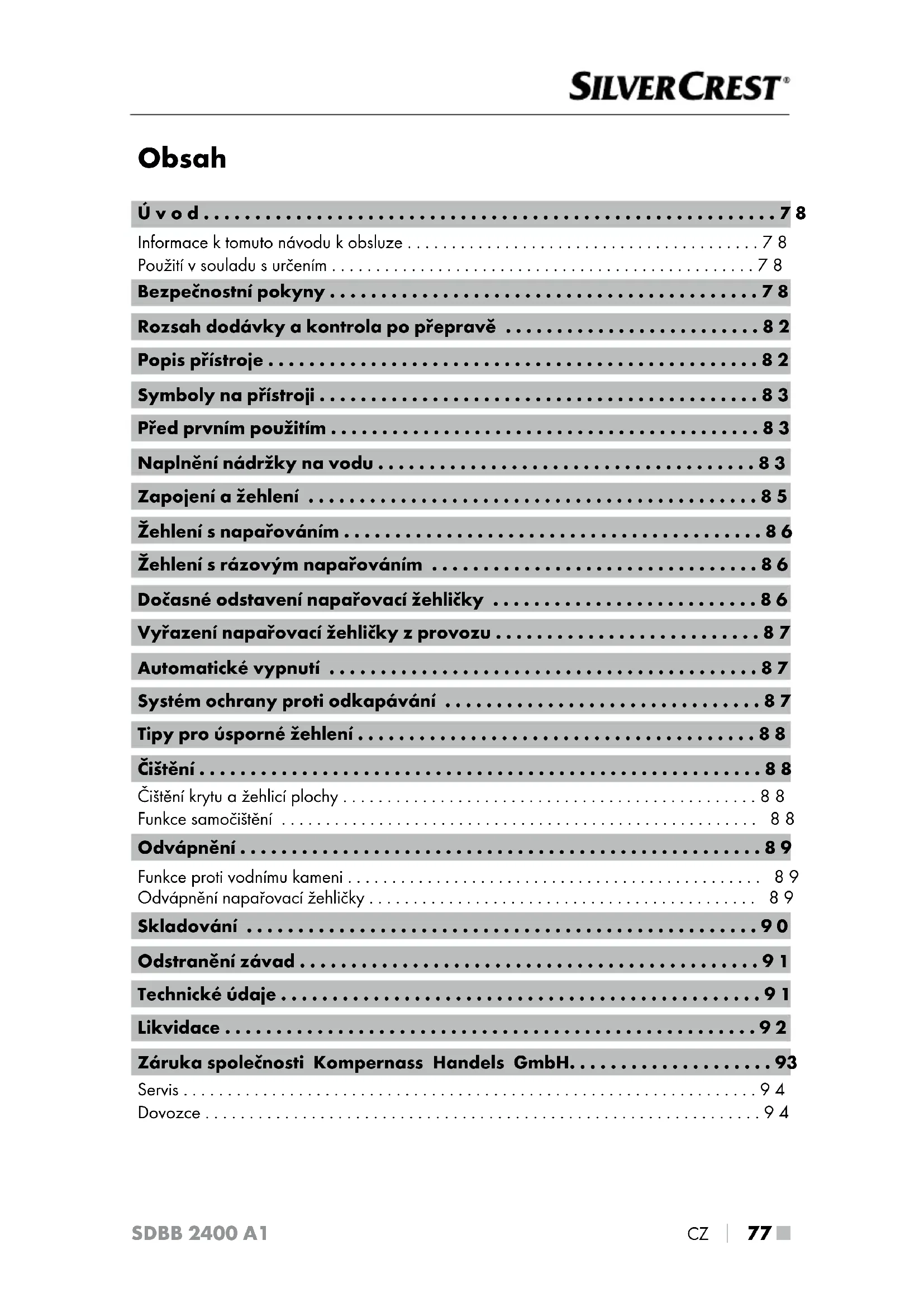 - Záruka společnosti Kompernass Handels GmbH p. 93