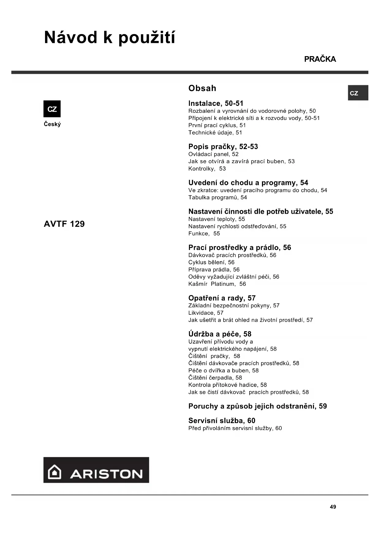 NÁVOD K OBSLUZE AVTF129 Ariston Thermo