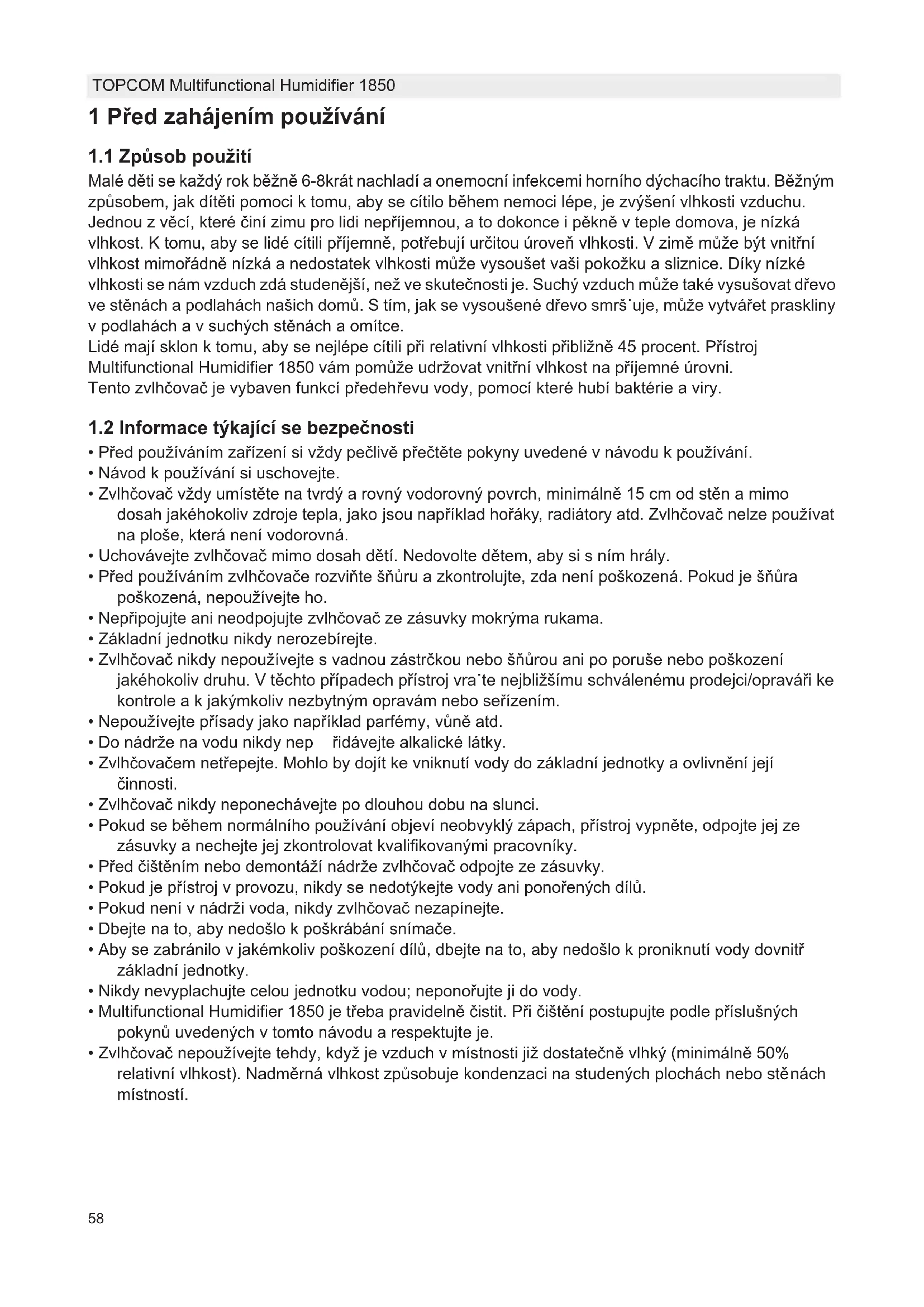 NÁVOD K OBSLUZE Multifunctional Humidifier 1850 TOPCOM