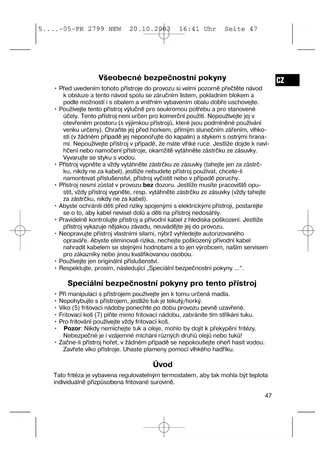 5....-05-FR 2799 NEW 20.10.2003 16:41 Uhr Seite 46Všeobecné bezpečnostní pokyny