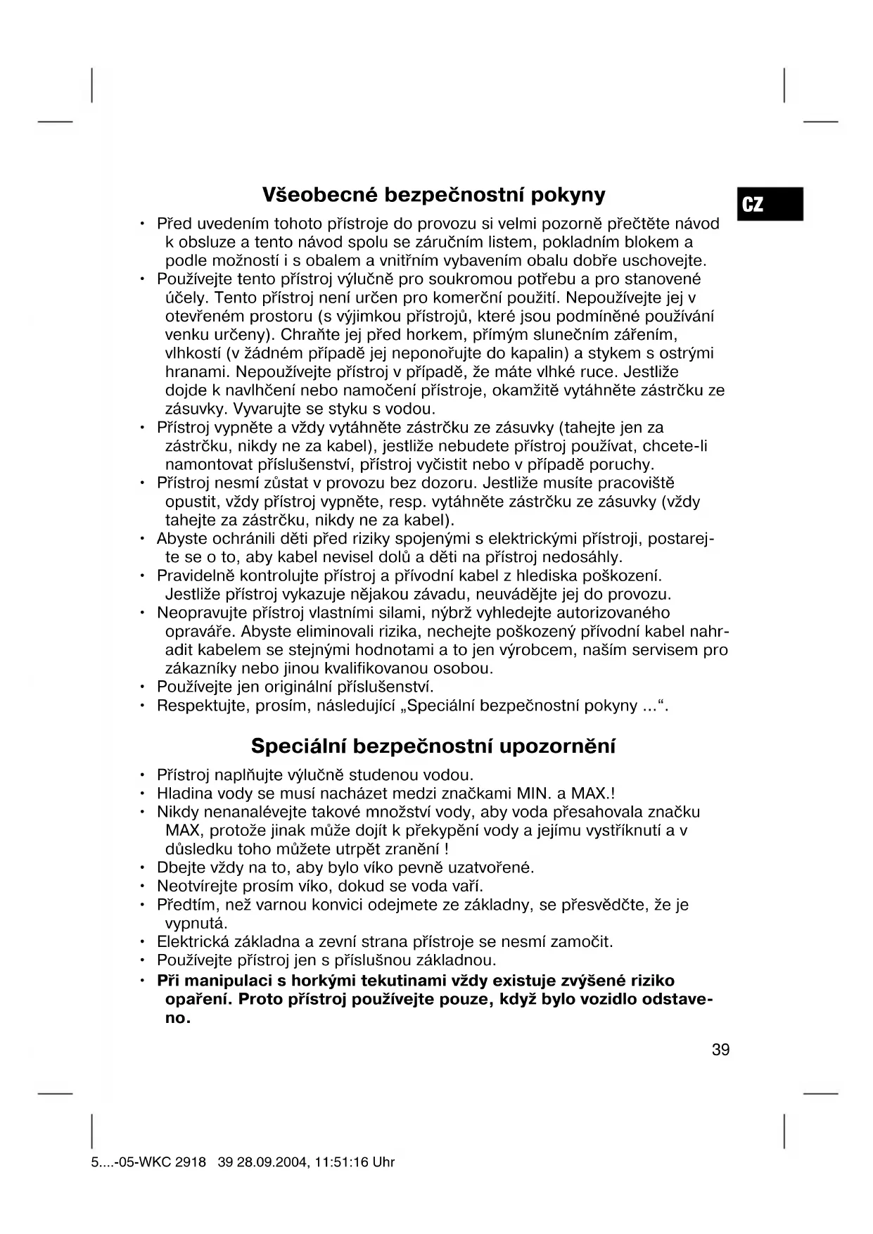 - Respektujte, prosím, následující „Speciální bezpečnostní pokyny ...“.