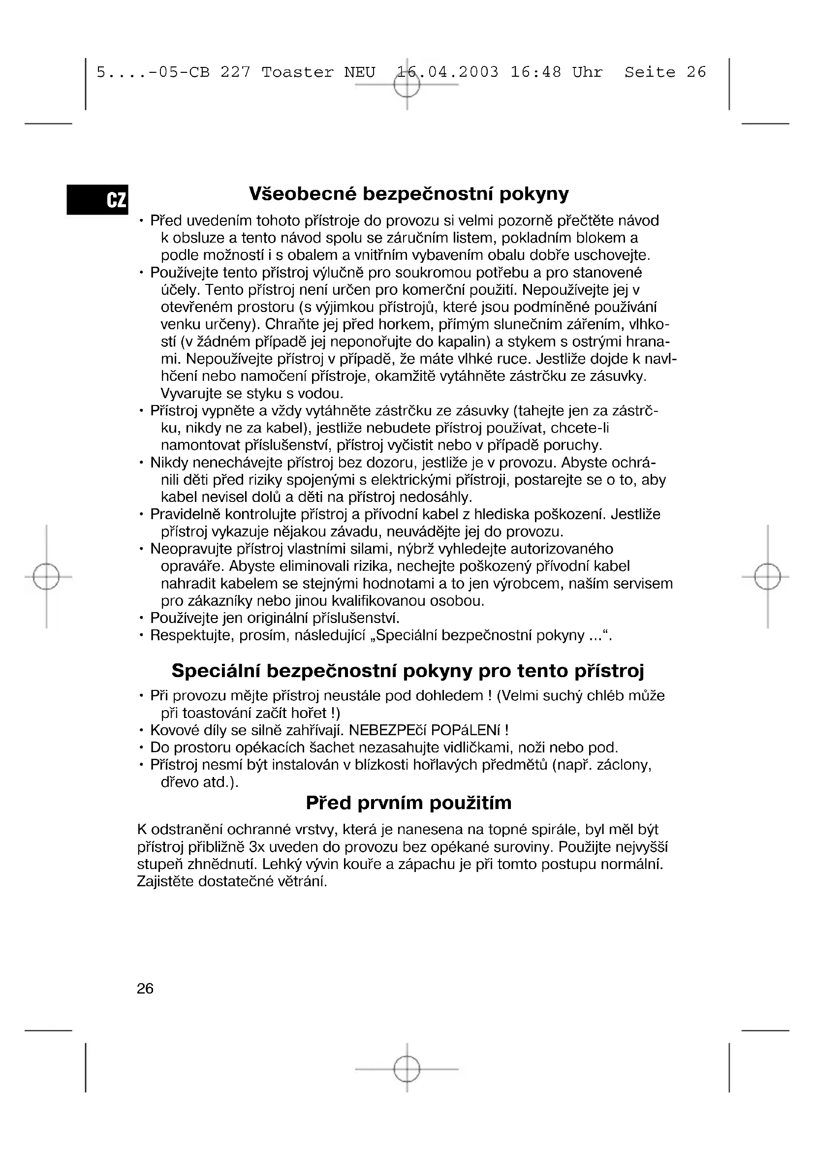 5....-05-CB 227 Toaster NEU 16.04.2003 16:48 Uhr Seite 25Všeobecné bezpečnostní pokyny