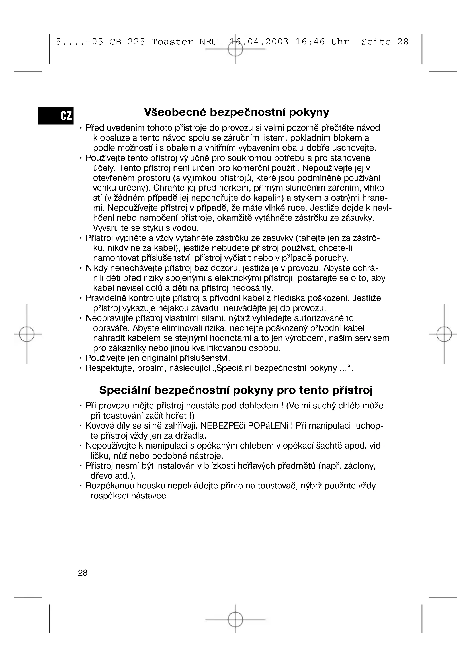 5....-05-CB 225 Toaster NEU 16.04.2003 16:46 Uhr Seite 27Všeobecné bezpečnostní pokyny