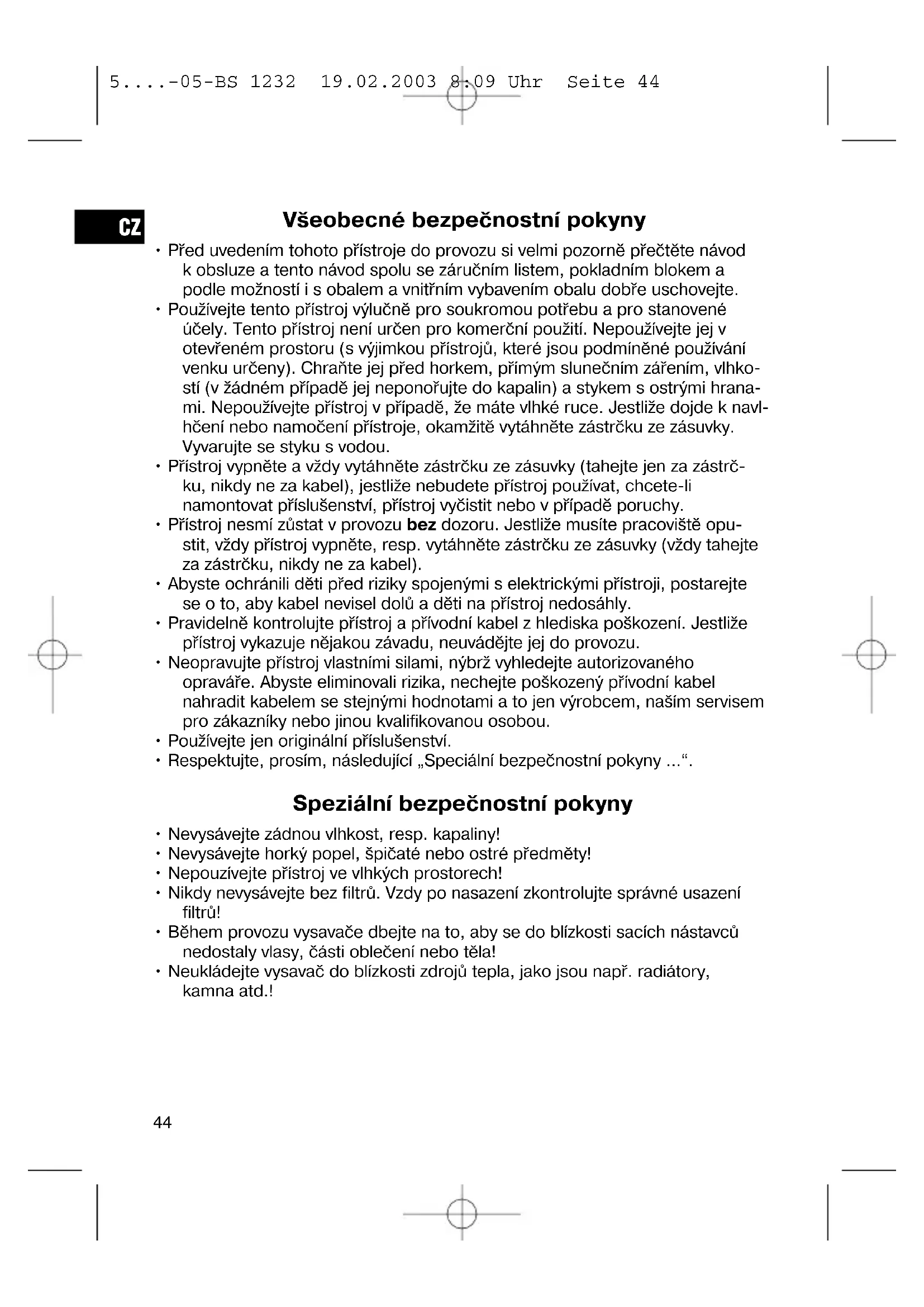 5....-05-BS 1232 19.02.2003 8:09 Uhr Seite 43Všeobecné bezpečnostní pokyny