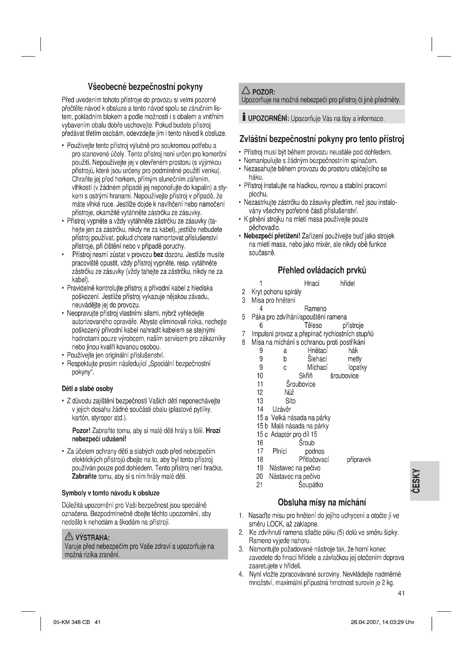 množství, maximální přípustná hmotnost surovin je 2 kg. 05-KM 348 CB 41 26.04.2007, 14:03:29 Uhr42 ČESKY ČESKY