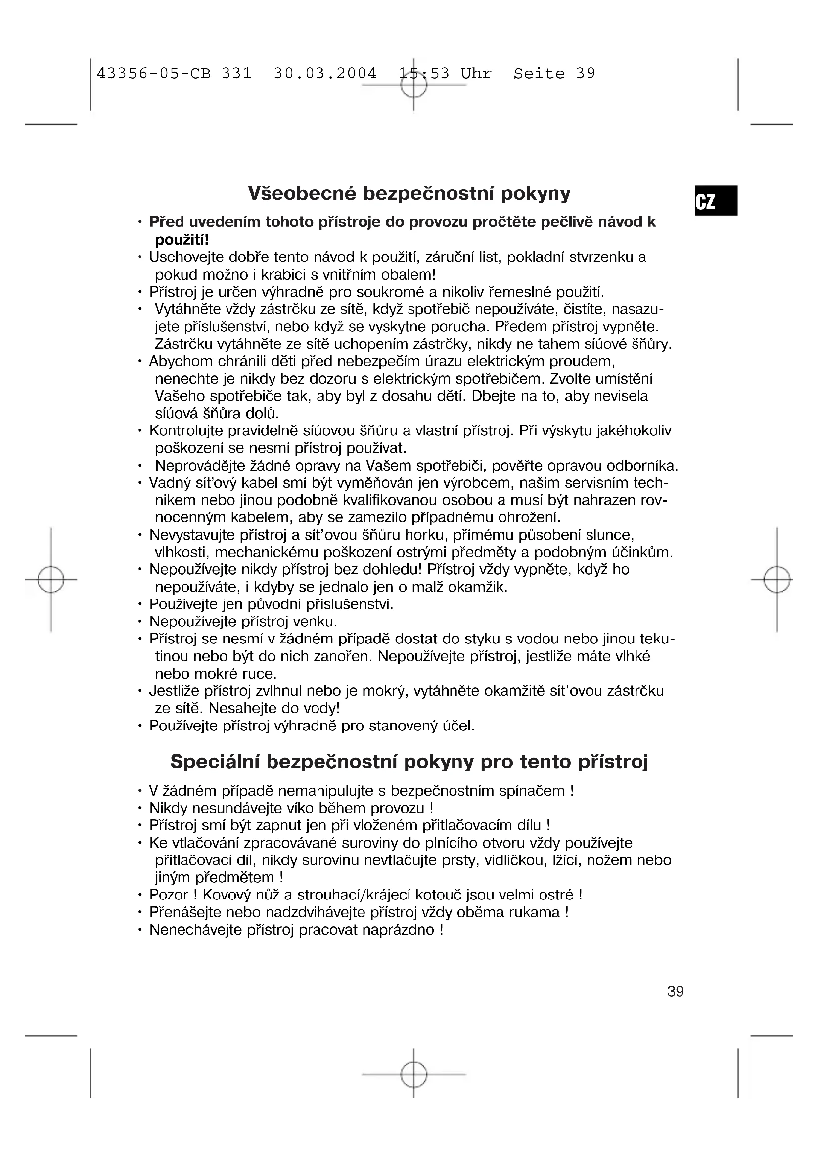 43356-05-CB 331 30.03.2004 15:53 Uhr Seite 38Všeobecné bezpečnostní pokyny