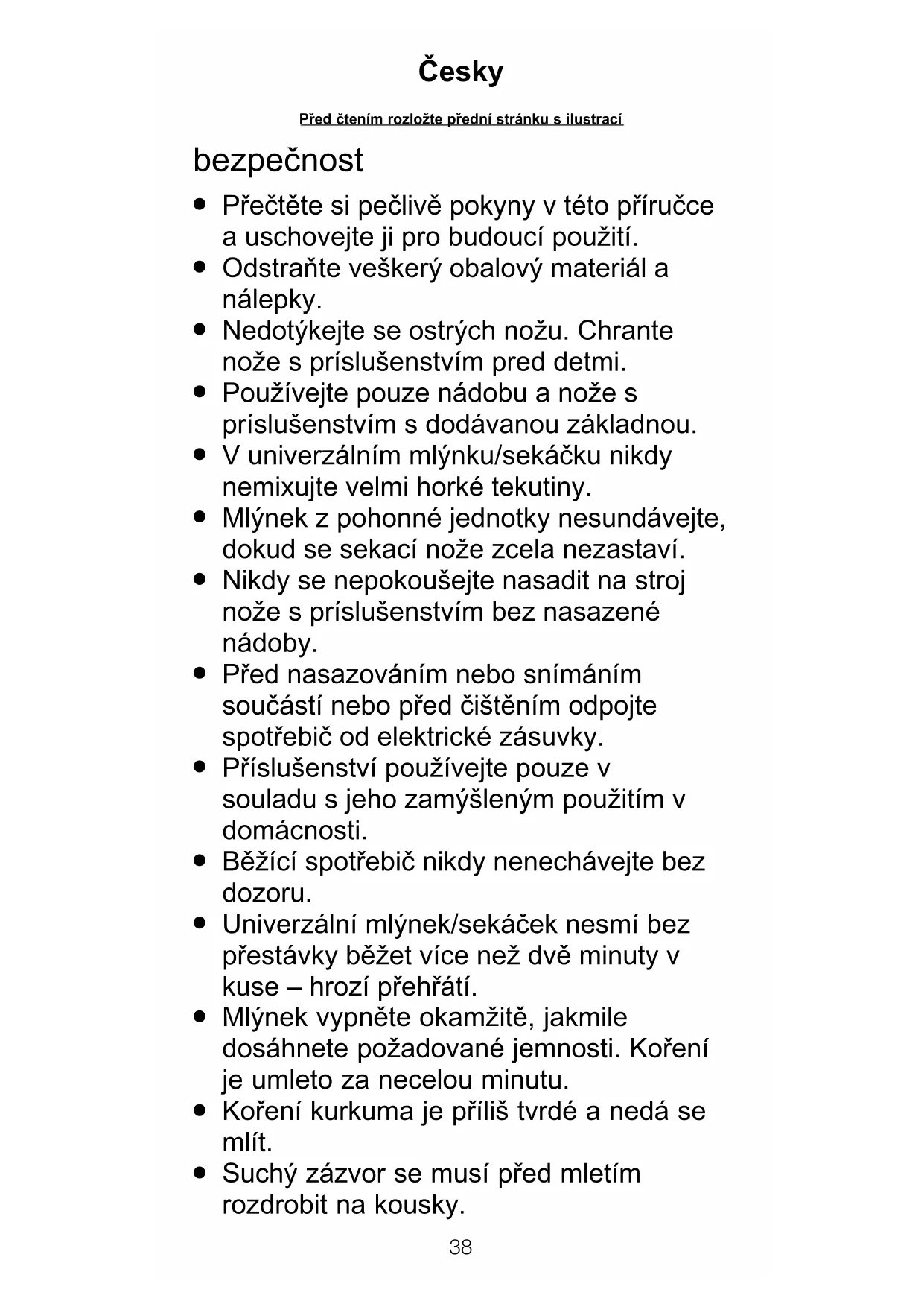 Suchƒ zázvor se musí p¡ed mletím rozdrobit na kousky. P¡ed ïtením rozlo¥te p¡ední stránku s ilustrací Ïesky39 English Další bezpečnostní upozornění najdete v návodu k používání kuchyňského robotu. Univerzální mlýnek/sekáček slouží k mletí koření a kávy, sekání bylinek, ořechů, mixování kojenecké stravy a vařeného ovoce a přípravě zálivek na salát.