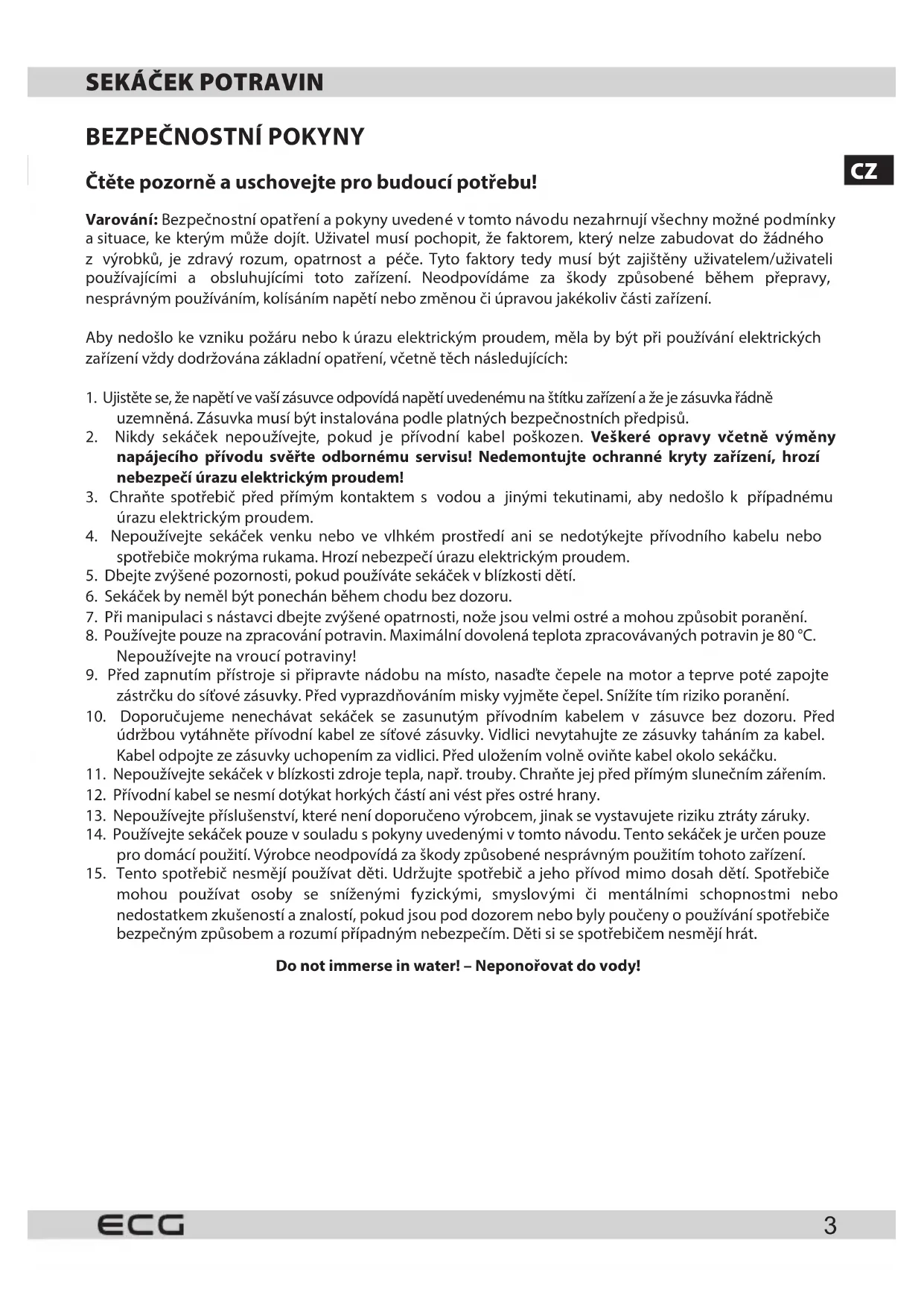 SP 466 - Kuchyňský robot ECG - Bezplatný návod k obsluze