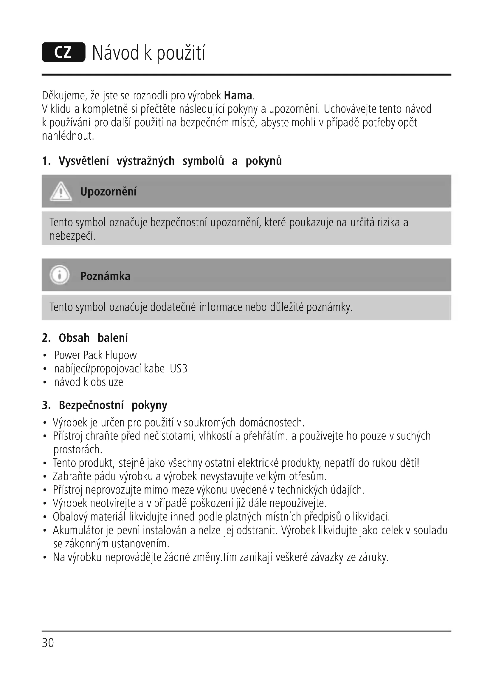 Flupow - Přenosná baterie HAMA - Bezplatný návod k obsluze