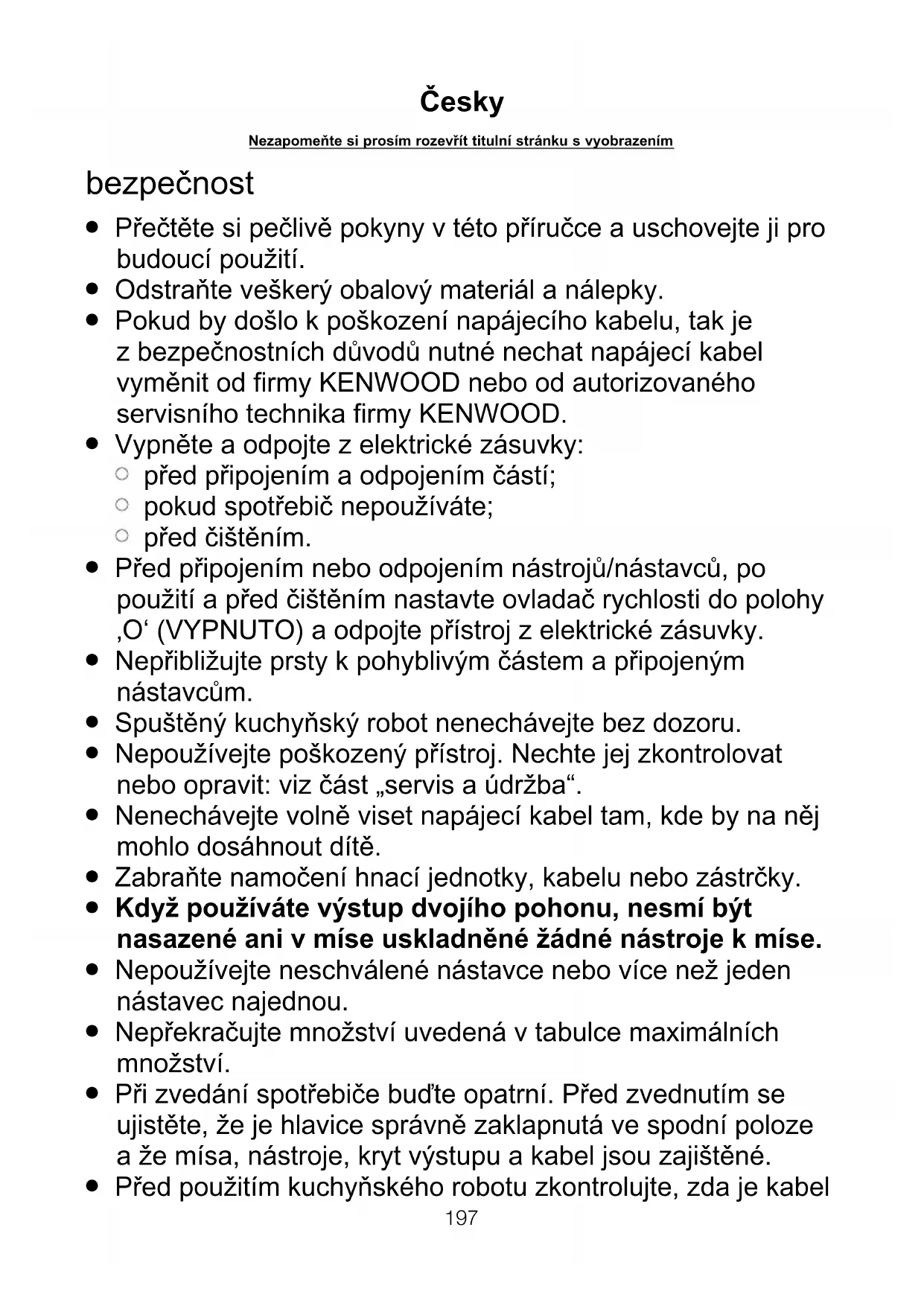 Před sejmutím víka z nádoby food processoru: vypněte; počkejte, až se nástavec / nožová jednotka zcela zastaví. 198l Nesundávejte víko food processoru, dokud se nožová jednotka / krájecí kotouče zcela nezastaví.