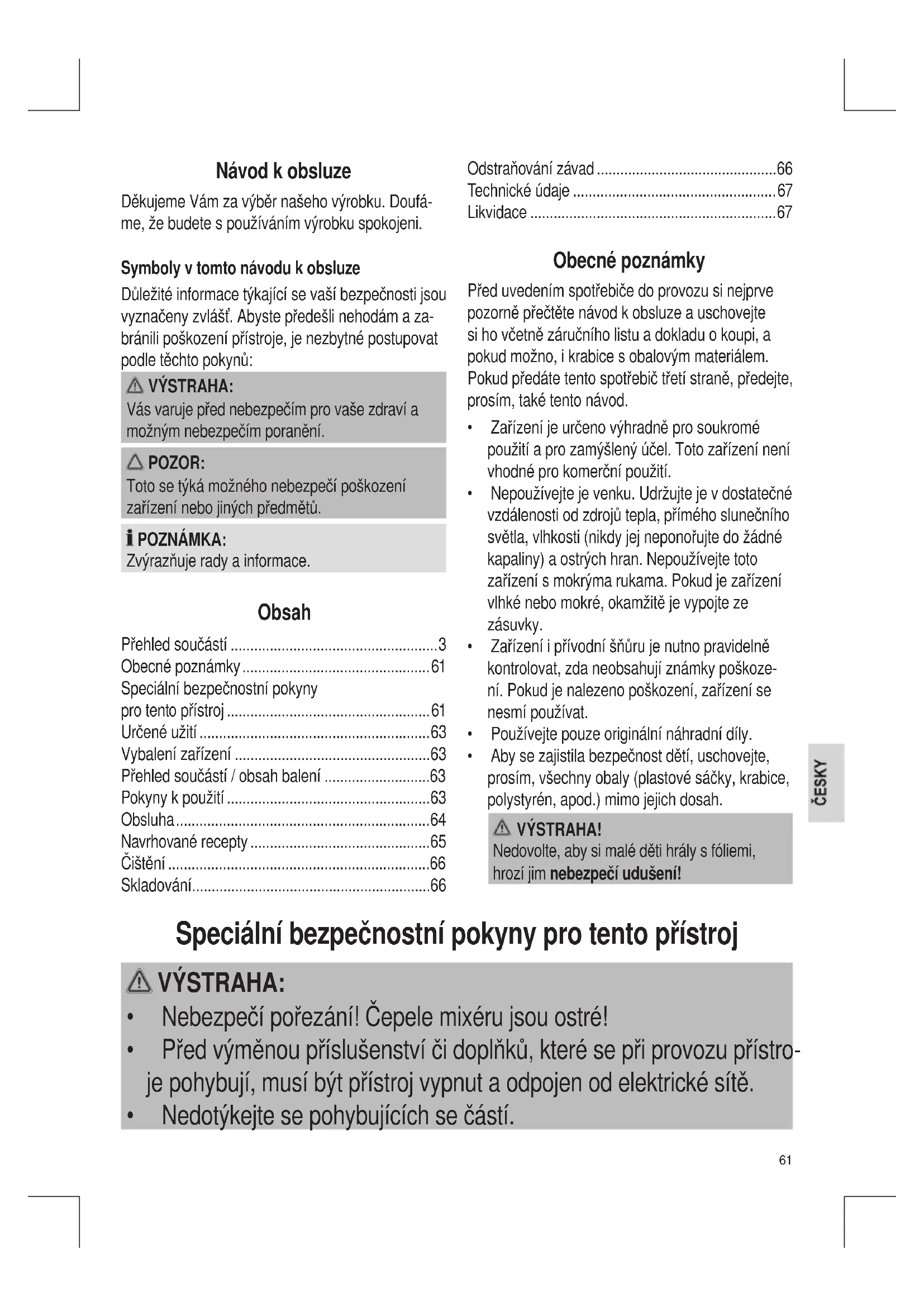 - Vmixážnínádoběseběhemmixovánínesmínikdynacházetžádné lžíce,stěrky,anijinépředměty.64