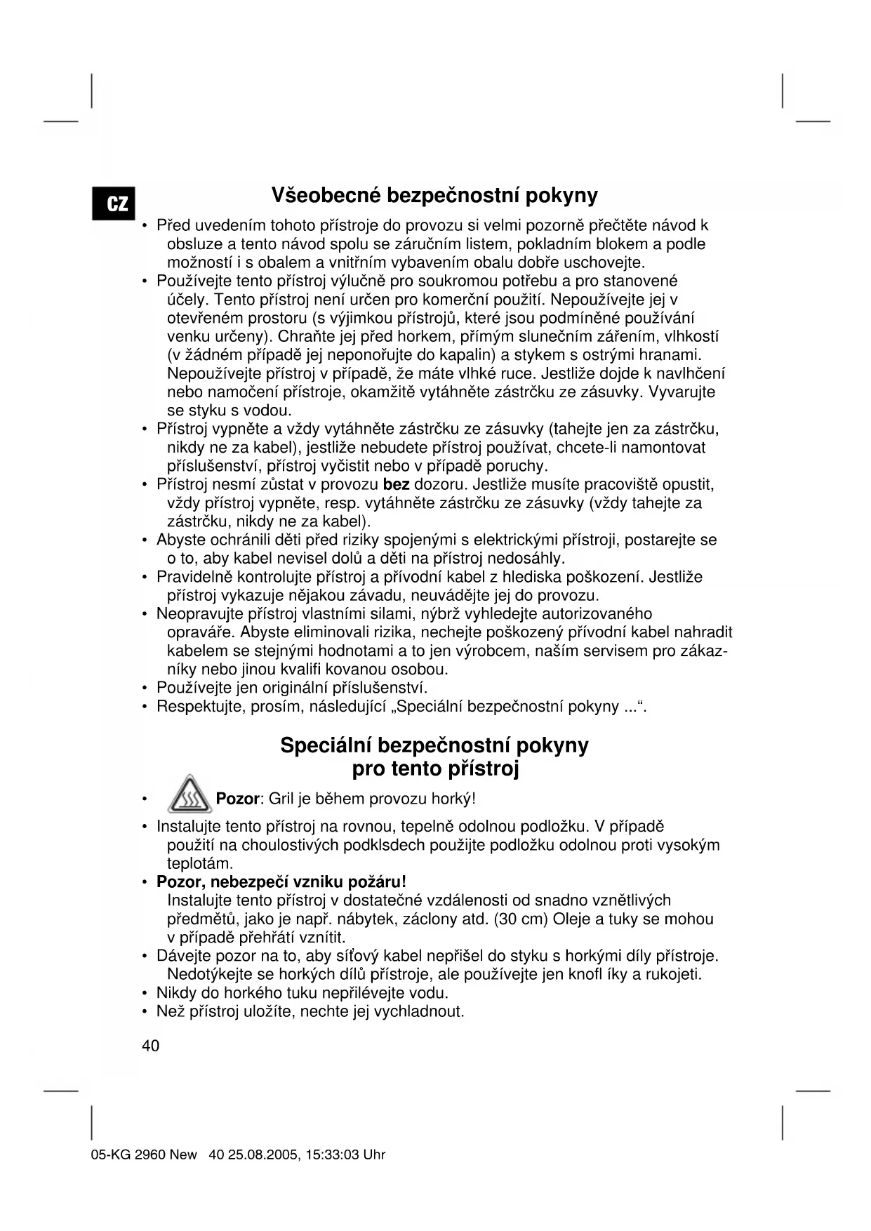 - Než přístroj uložíte, nechte jej vychladnout. 05-KG 2960 New 40 25.08.2005, 15:33:03 UhrCZ