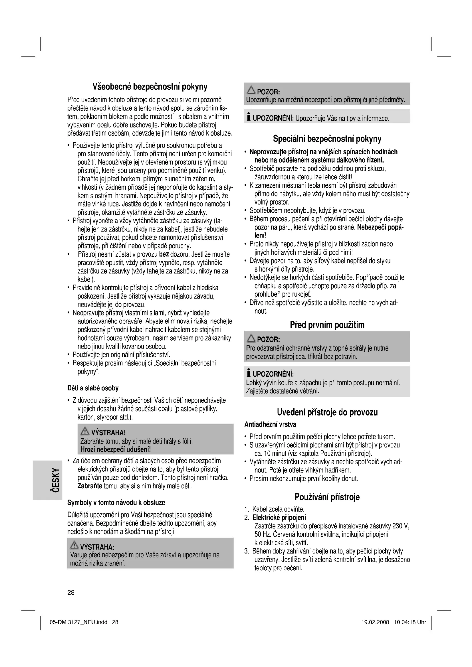 uzavřeny. Jestliže svítí zelená kontrolní svítilna, je dosaženo teploty pro pečení. 05-DM 3127_NEU.indd 2805-DM 3127_NEU.indd 28 19.02.2008 10:04:18 Uhr19.02.2008 10:04:18 Uhr29 ČESKY ČESKY