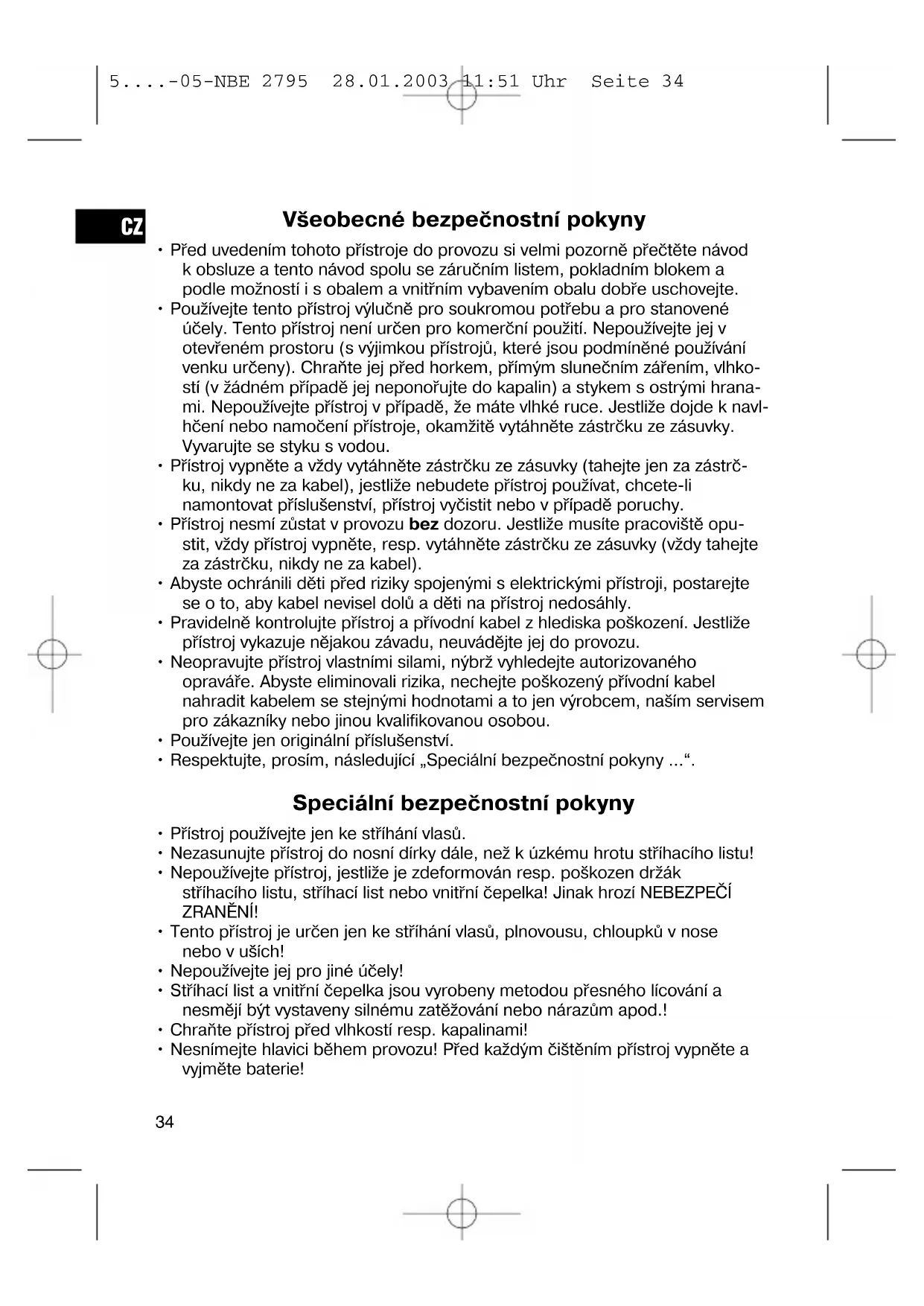 5....-05-NBE 2795 28.01.2003 11:51 Uhr Seite 34• Nezasahujte do stříhacích hlav žádnými špičatými předměty.