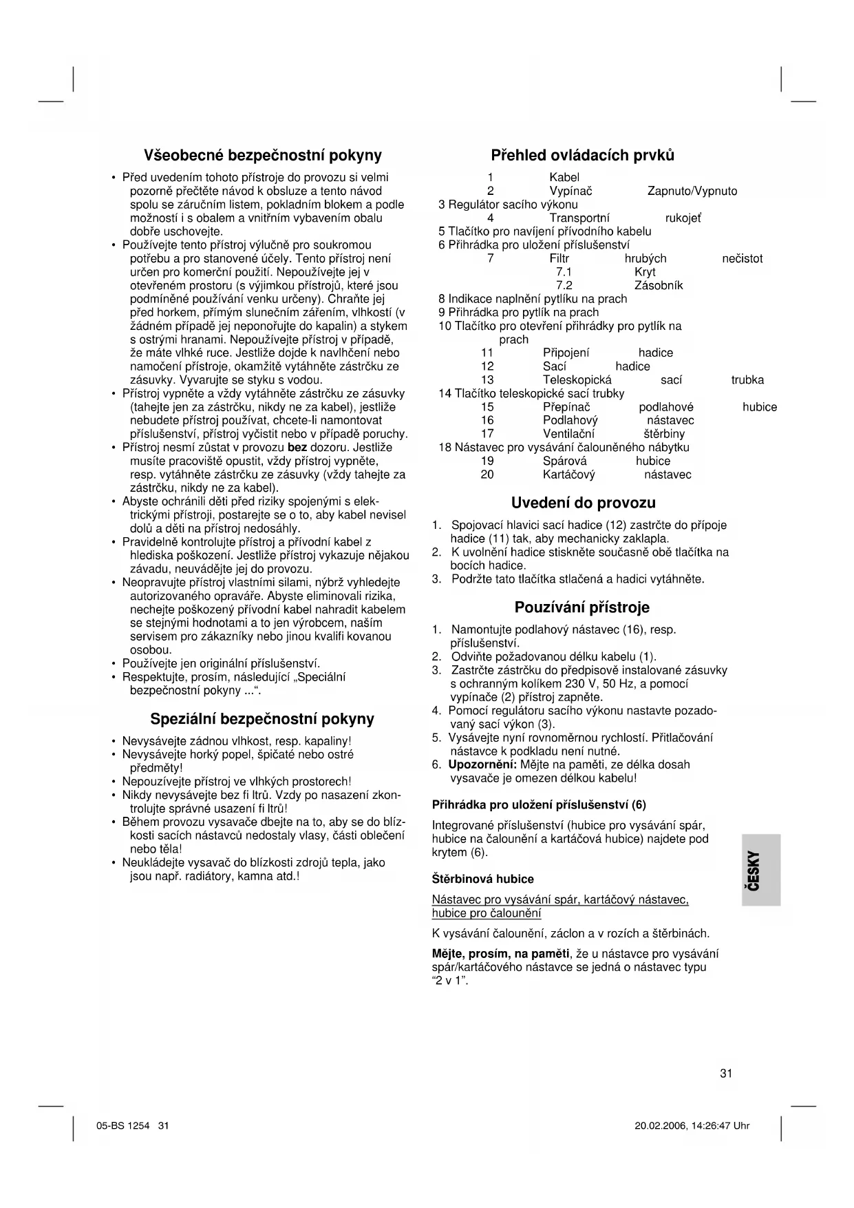 max. :.................................................................2300 W Třída ochrany:..................................................................ΙΙ Tento přístroj byl testován podle všech příslušných, v současné době platných směrnic CE, jako je např. elek- tromagnetická kompatibilita a direktiva o nízkonapěťové bezpečnosti, a byl zkonstruován podle nejnovějších bezpečnostně-technických předpisů. Vyhrazujeme si technické změny! 05-BS 1254 32 20.02.2006, 14:26:48 Uhr33