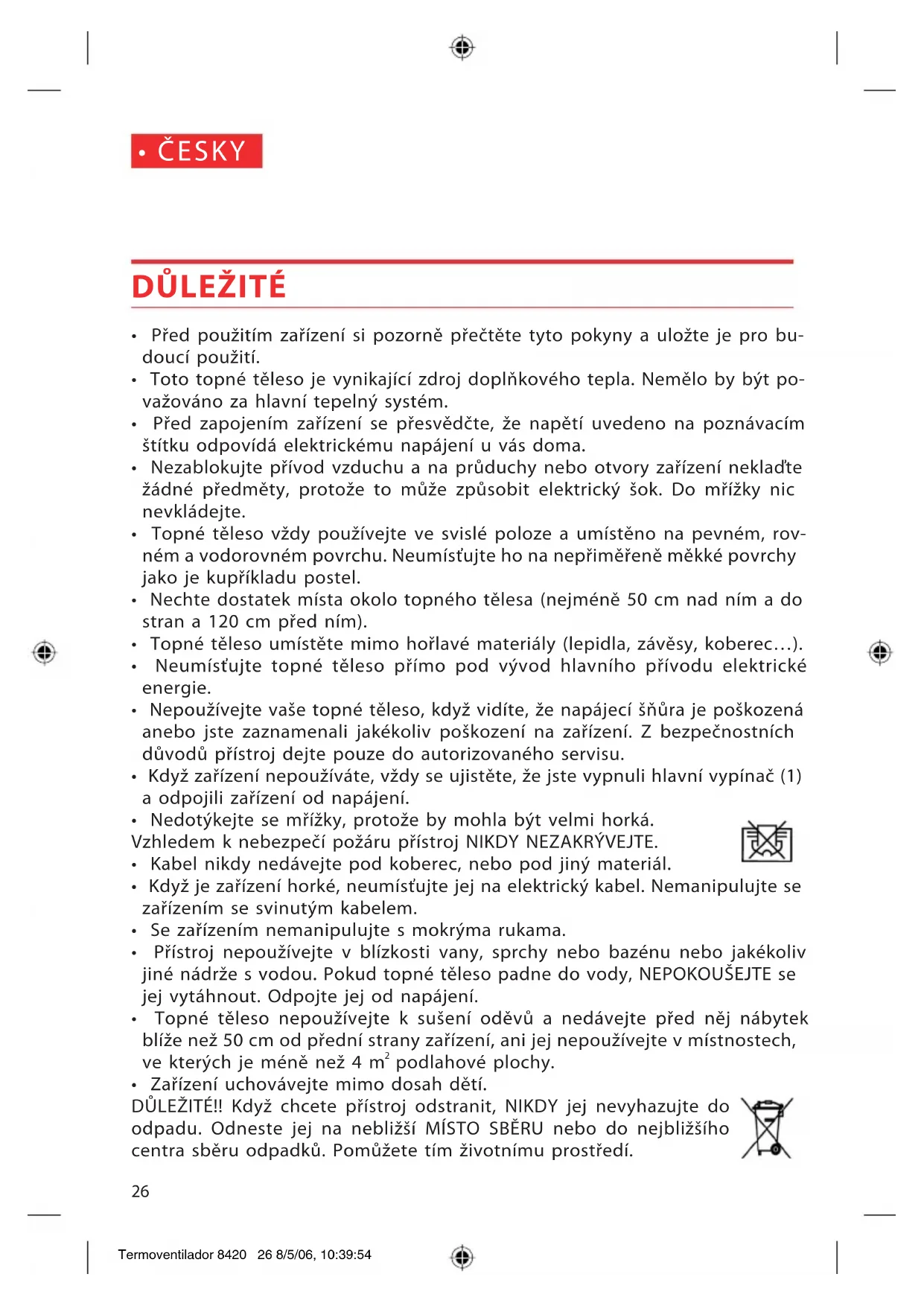DŮLEŽITÉ!! Když chcete přístroj odstranit, NIKDY jej nevyhazujte do odpadu. Odneste jej na nebližší MÍSTO SBĚRU nebo do nejbližšího centra sběru odpadků. Pomůžete tím životnímu prostředí.