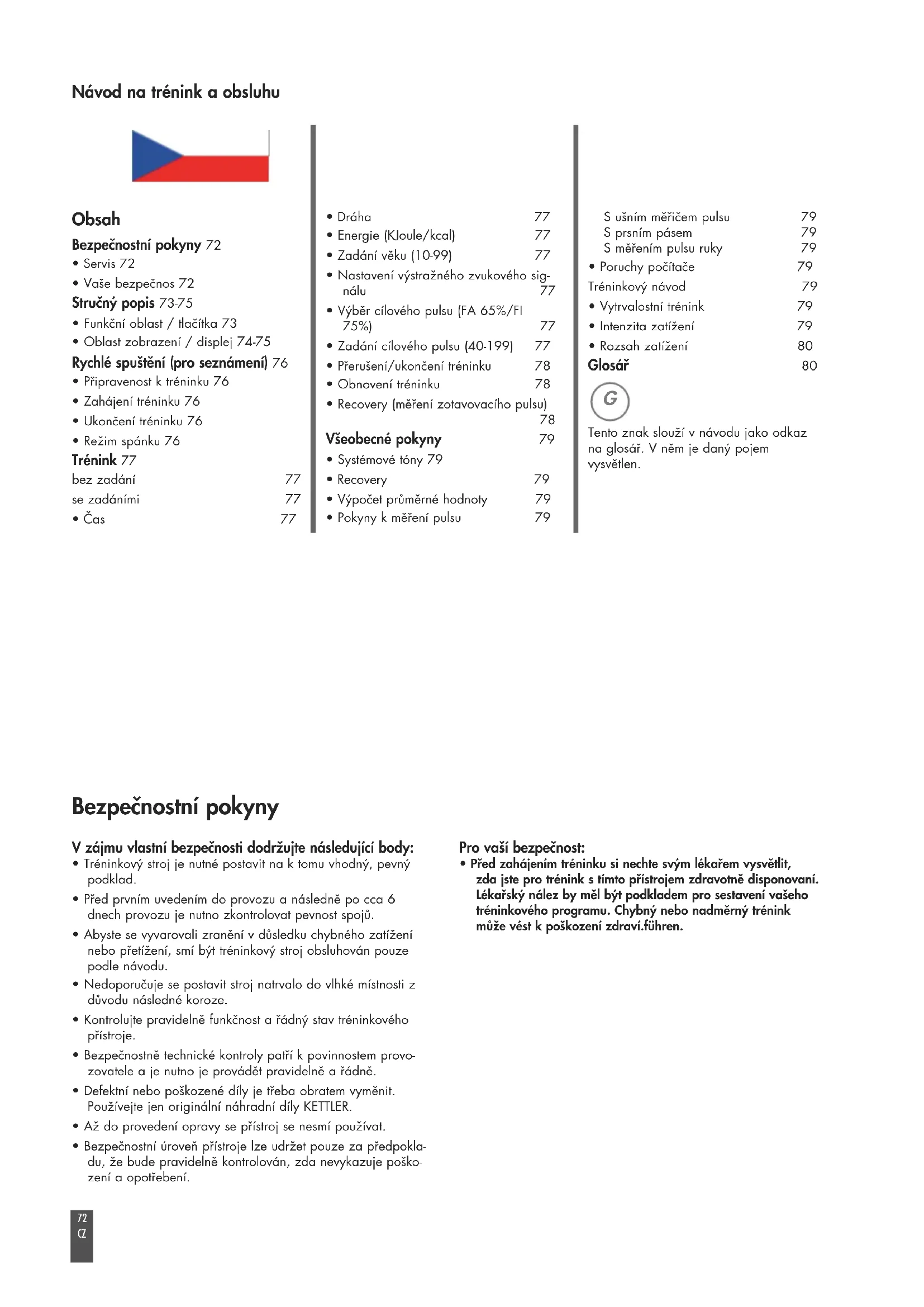 - Vaše bezpečnos 72 Stručný popis 73-75