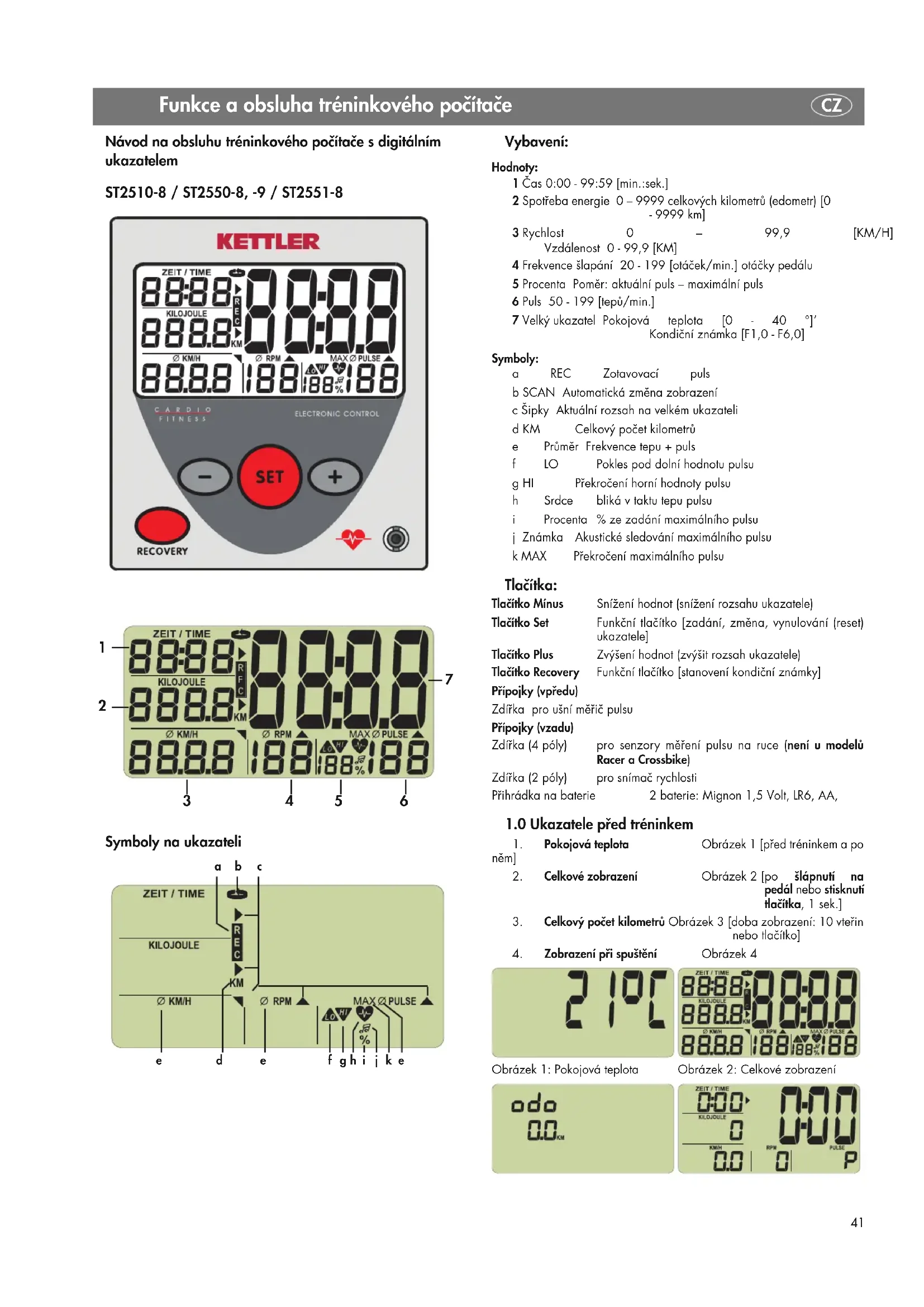 Obrázek 1: Pokojová teplota Obrázek 2: Celkové zobrazení Návod na obsluhu tréninkového počítače s digitálním ukazatelem ST2510-8 / ST2550-8, -9 / ST2551-8 Symboly na ukazateli