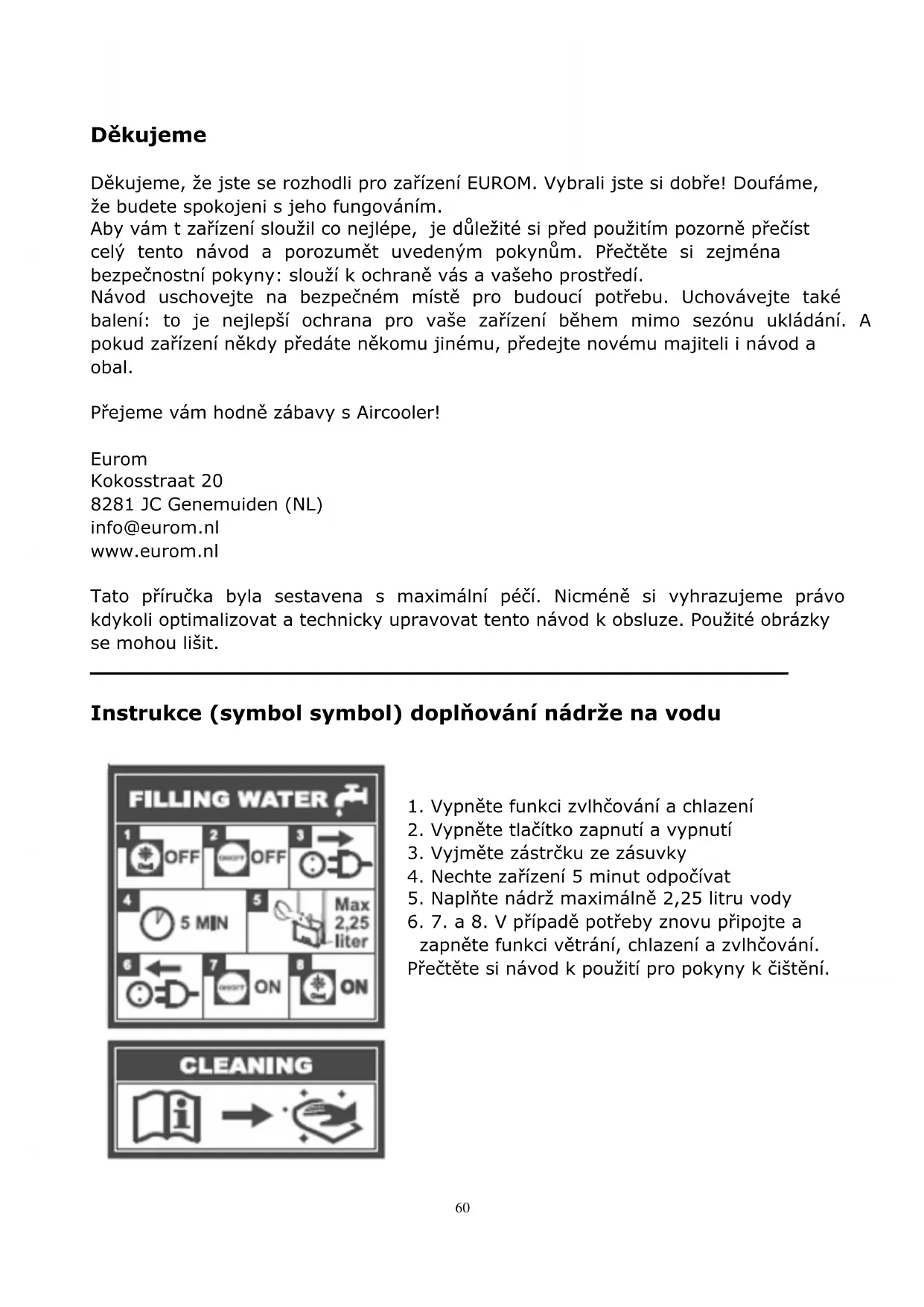 Najděte návod k zařízení zdarma Air cooler Eurom ve formátu PDF.