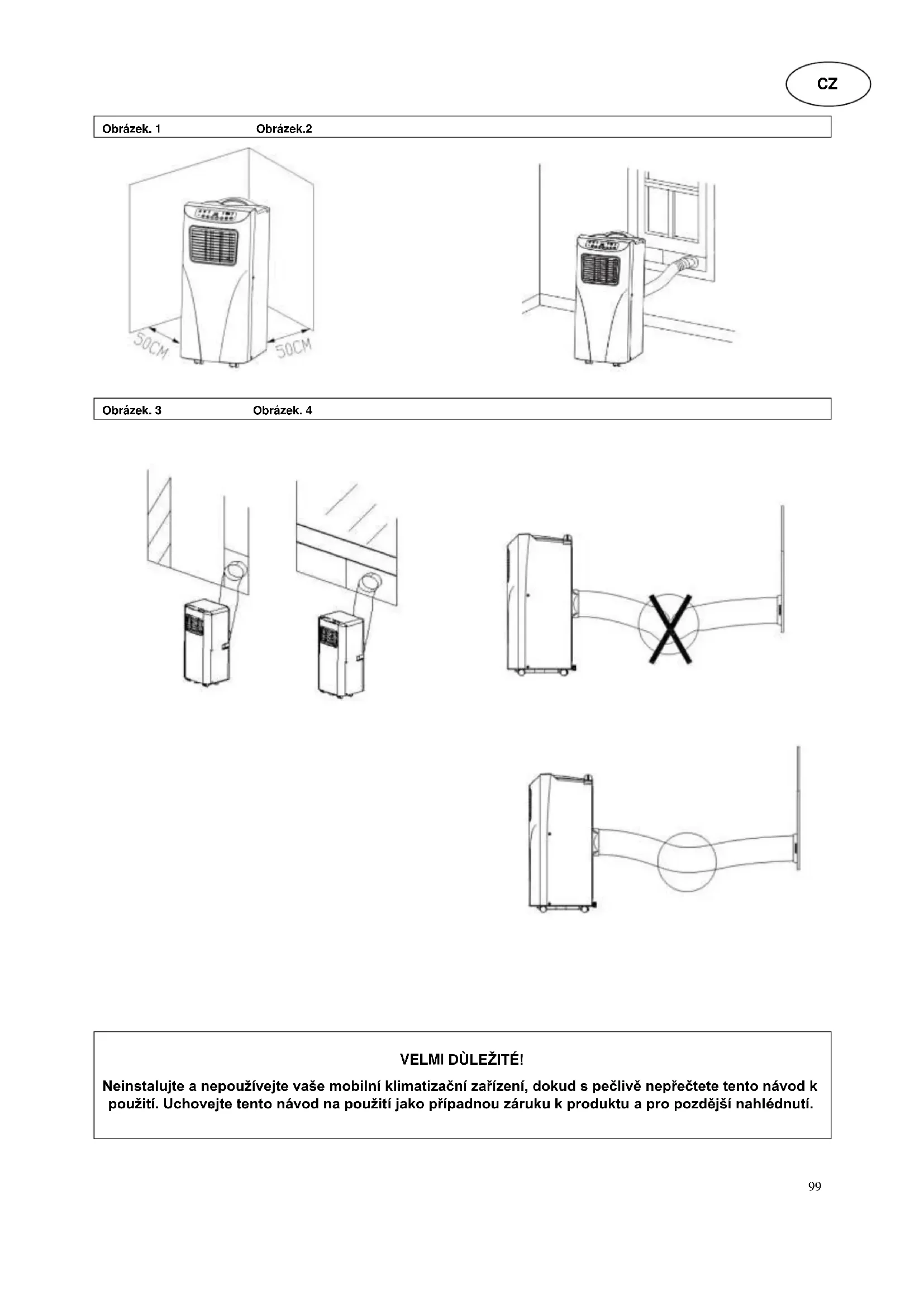 VELMI DÙLEŽITÉ! Neinstalujte a nepoužívejte vaše mobilní klimatizační zařízení, dokud s pečlivě nepřečtete tento návod k použití. Uchovejte tento návod na použití jako případnou záruku k produktu a pro pozdější nahlédnutí.