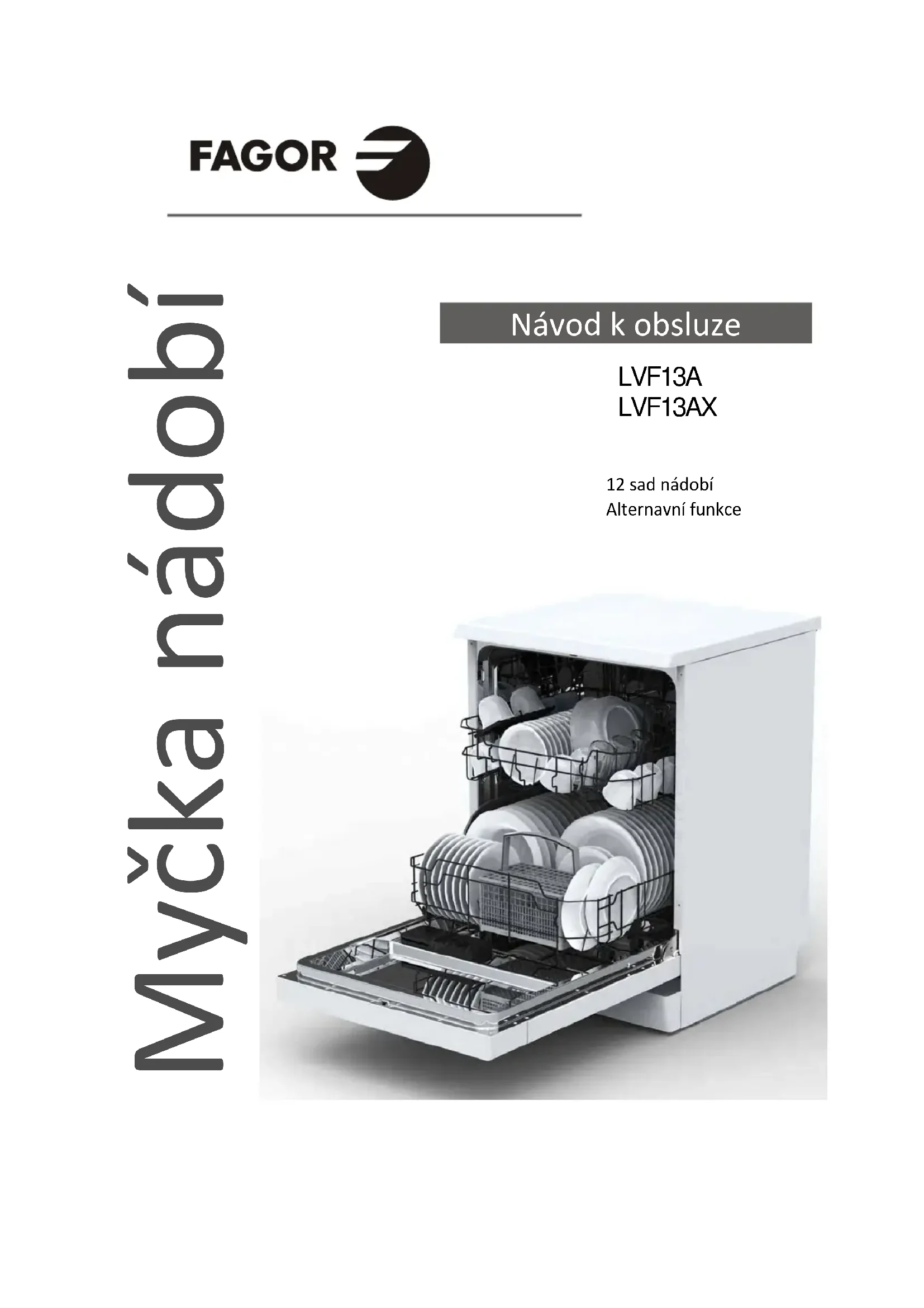 Alternativní funkce Myčka nádobí LVF13A LVF13AXPřečtěte si tuto příručku Vážený zákazníku, Před prvním použitím myčky si prosím prostudujte tento návod. Pomůže Vám ke správnému používání a údržbě myčky. Návod si uschovejte pro případné pozdější použití. Předejte jej také případnému dalšímu majiteli tohoto spotřebiče. Tento návod obsahuje bezpečnostní pokyny, provozní pokyny, pokyny pro instalaci, různé tipy pro řešení závad atd. Dříve, než zavoláte do servisu Některé běžné problémy můžete vyřešit sami s pomocí kapitoly "Tipy pro řešení závad". Pokud nejste schopni vyřešit tyto problémy sami, požádejte o pomoc profesionální servisní techniky. POZNÁMKA: Výrobce si v rámci vlastní politiky neustálého vývoje a aktualizace produktu vyhrazuje právo provádět změny bez předchozího upozornění. Tento návod je nutno si v případě potřeby vyžádat od výrobce nebo odpovědného prodejce.
