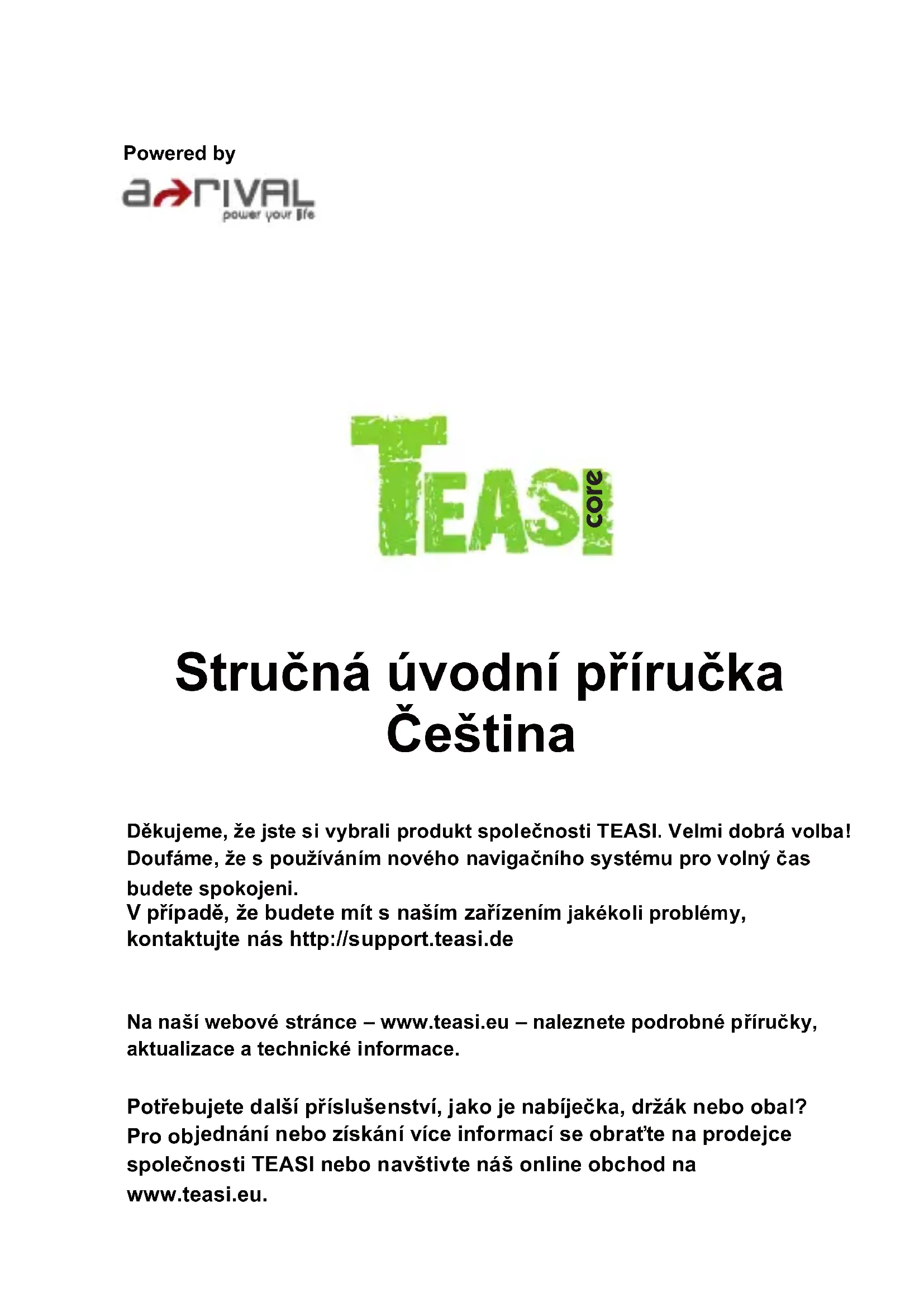 Potrebujete dalsi prisluşenství, jak je nabíječka, držák nebo obal? Pro objednámí nebo ziskány vice informaci se obratte na prodejce společnosti TEASI nebo navstivte náš online obchod na www.teasi.eu.