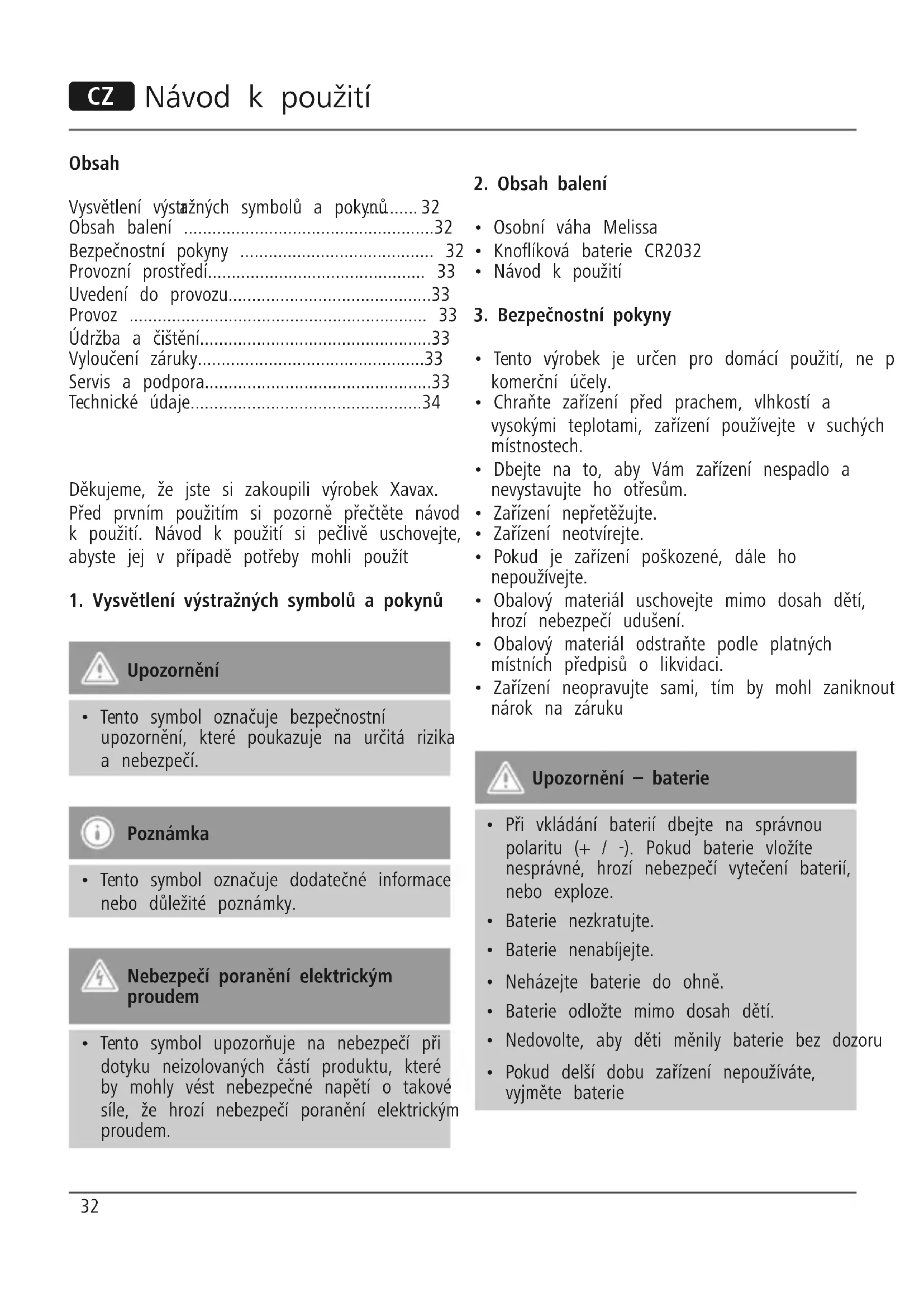 - Technické údaje Děkujeme, že jste si zakoupili výrobek Xavax. Před prvním použitím si pozorně přečtěte návod k použití. Návod k použití si pečlivě uschovejte, abyste jej v případě potřeby mohli použít p. 34