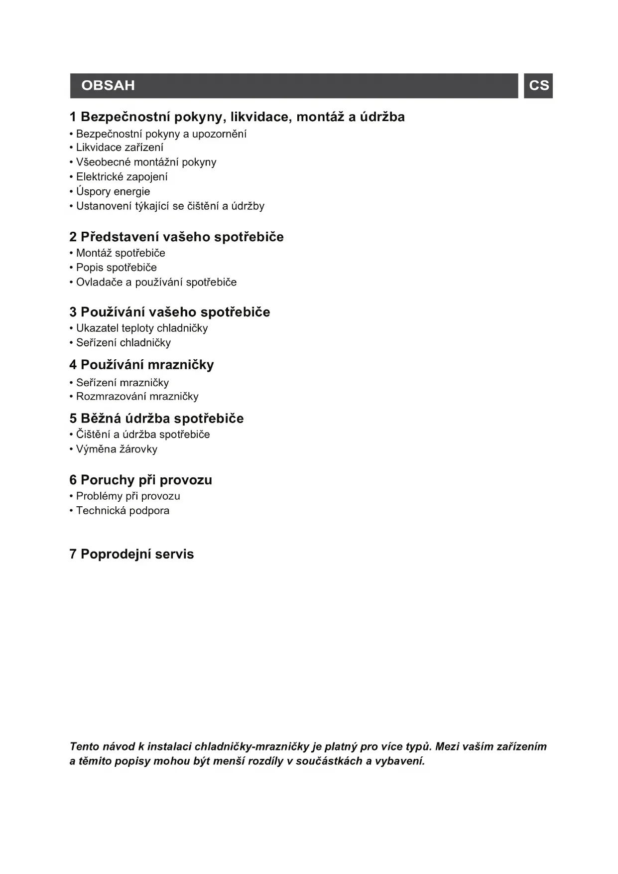 Tento návod k instalaci chladničky-mrazničky je platný pro více typů. Mezi vaším zařízením a těmito popisy mohou být menší rozdíly v součástkách a vybavení.P!ístroj odpovídá následujícím evropským sm"rnicím
