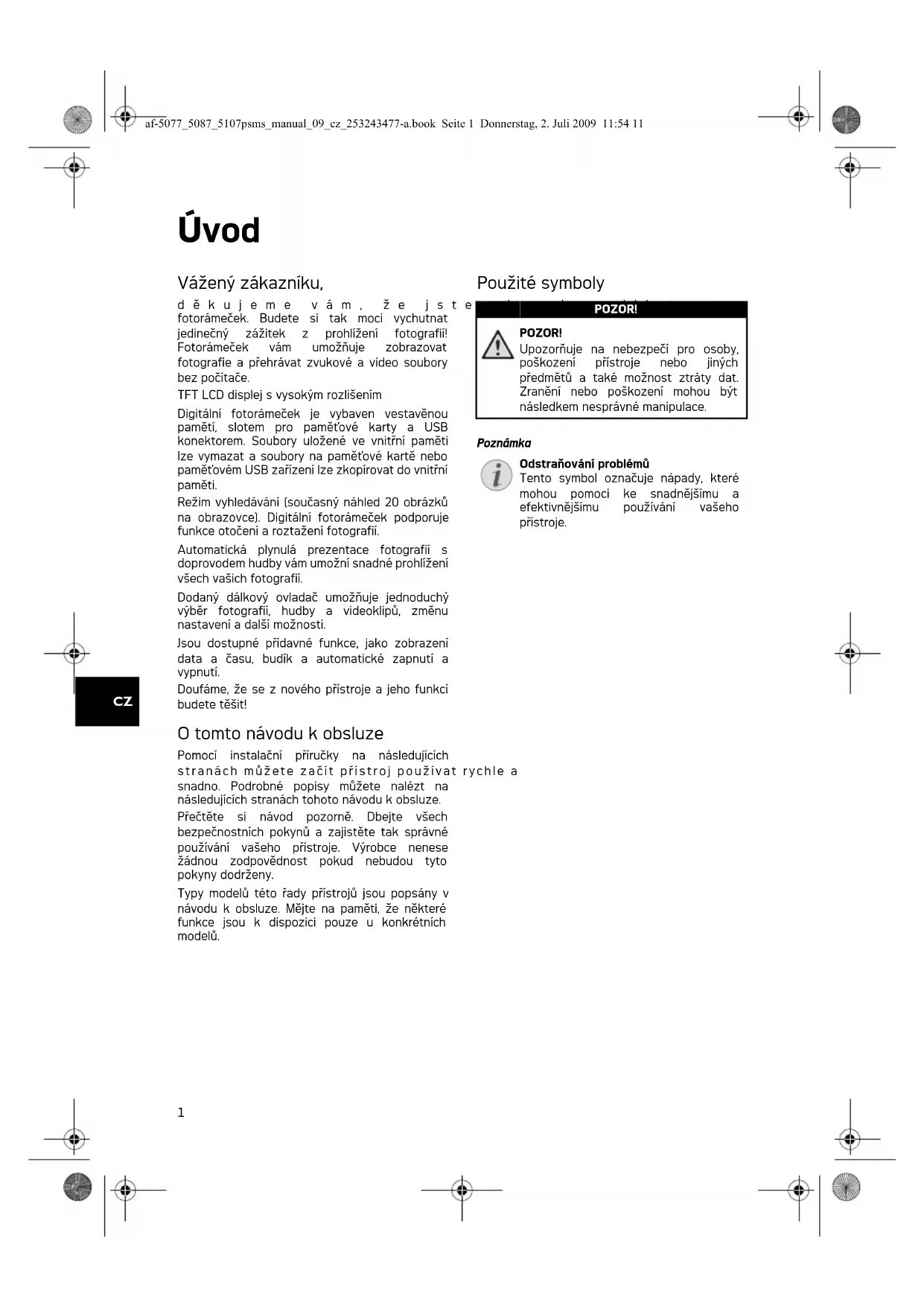 Pomoci instalacni prirucky na nasledujicich stranach muzete zacit pristroj pouzivat rychle a snadno. Podrobné popisy muzete nalezt na nasledujicich stranach tohoto navodu k obsluze.