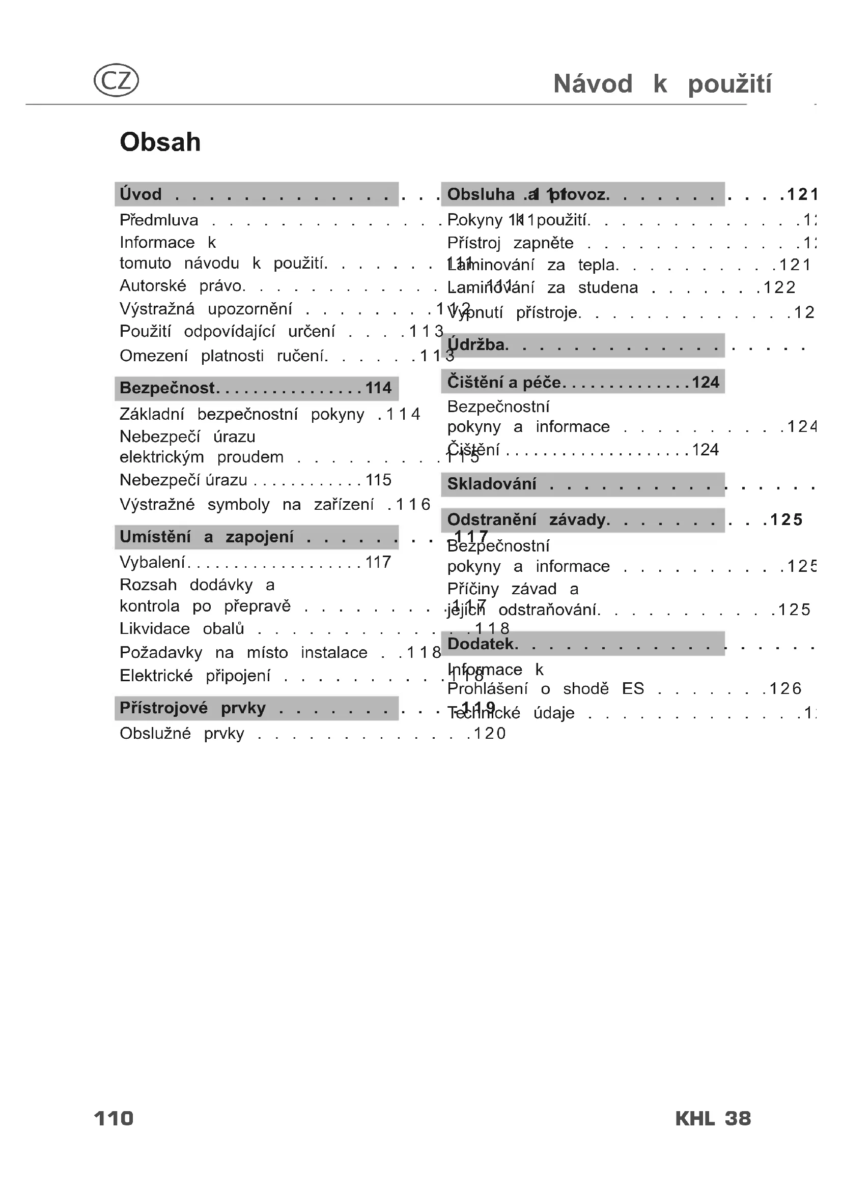 - Technické údaje Návod k použití111 Úvod KHL 38 p. 127