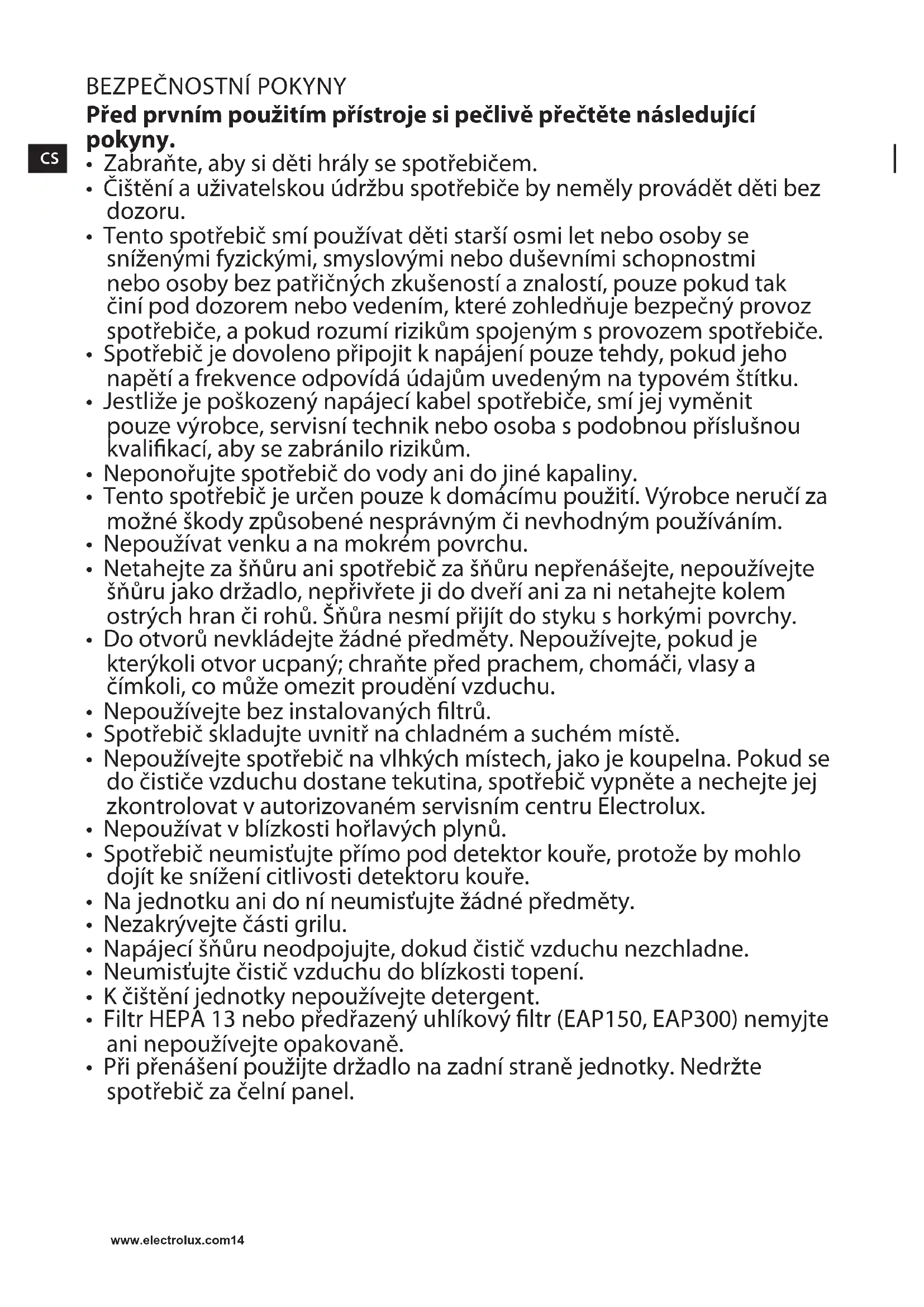 NÁVOD K OBSLUZE EAP150 ELECTROLUX