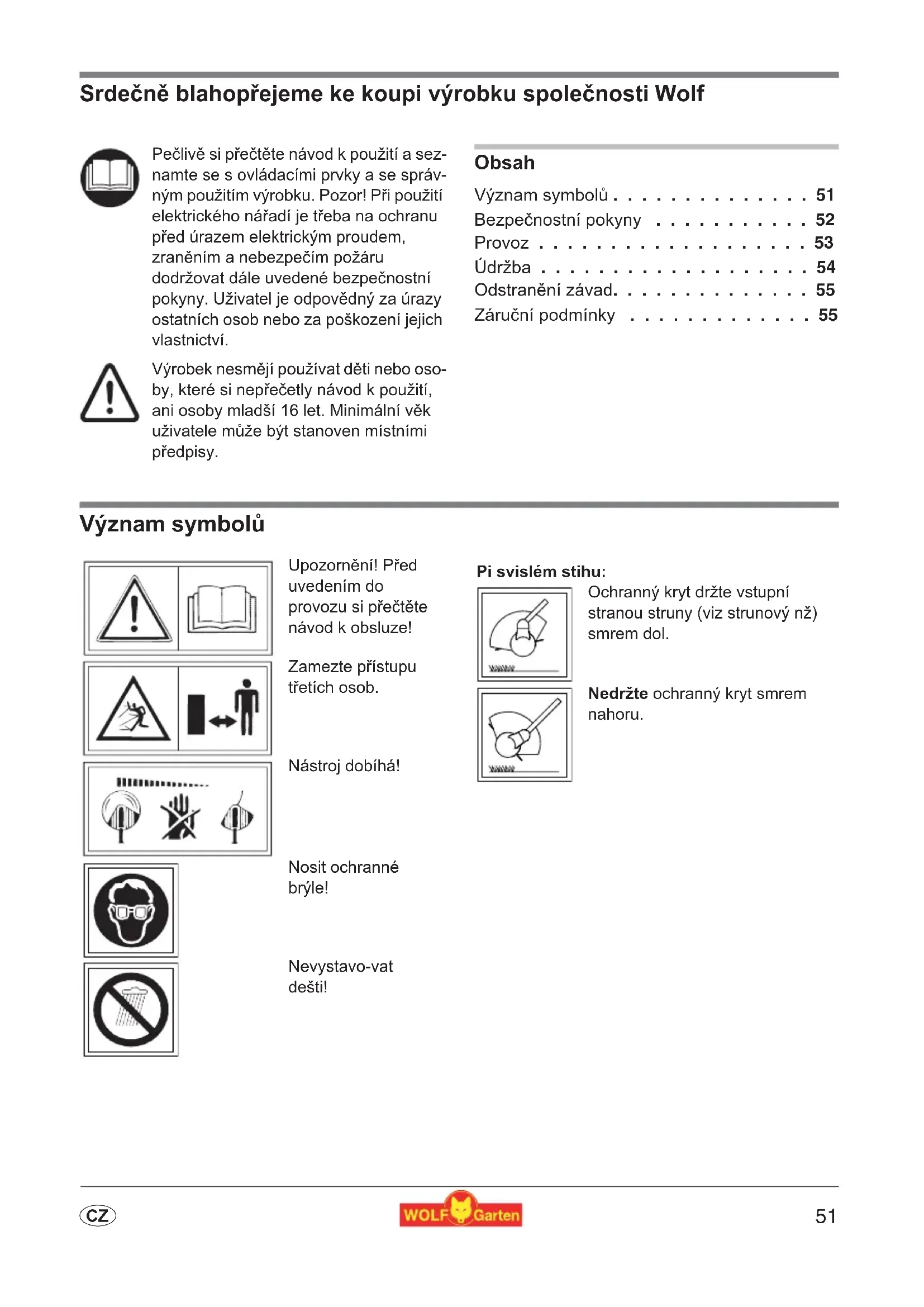 - CSrde>n? blahop@ejeme ke koupi výrobku spole>nosti Wolf Obsah Význam symbol p. 51