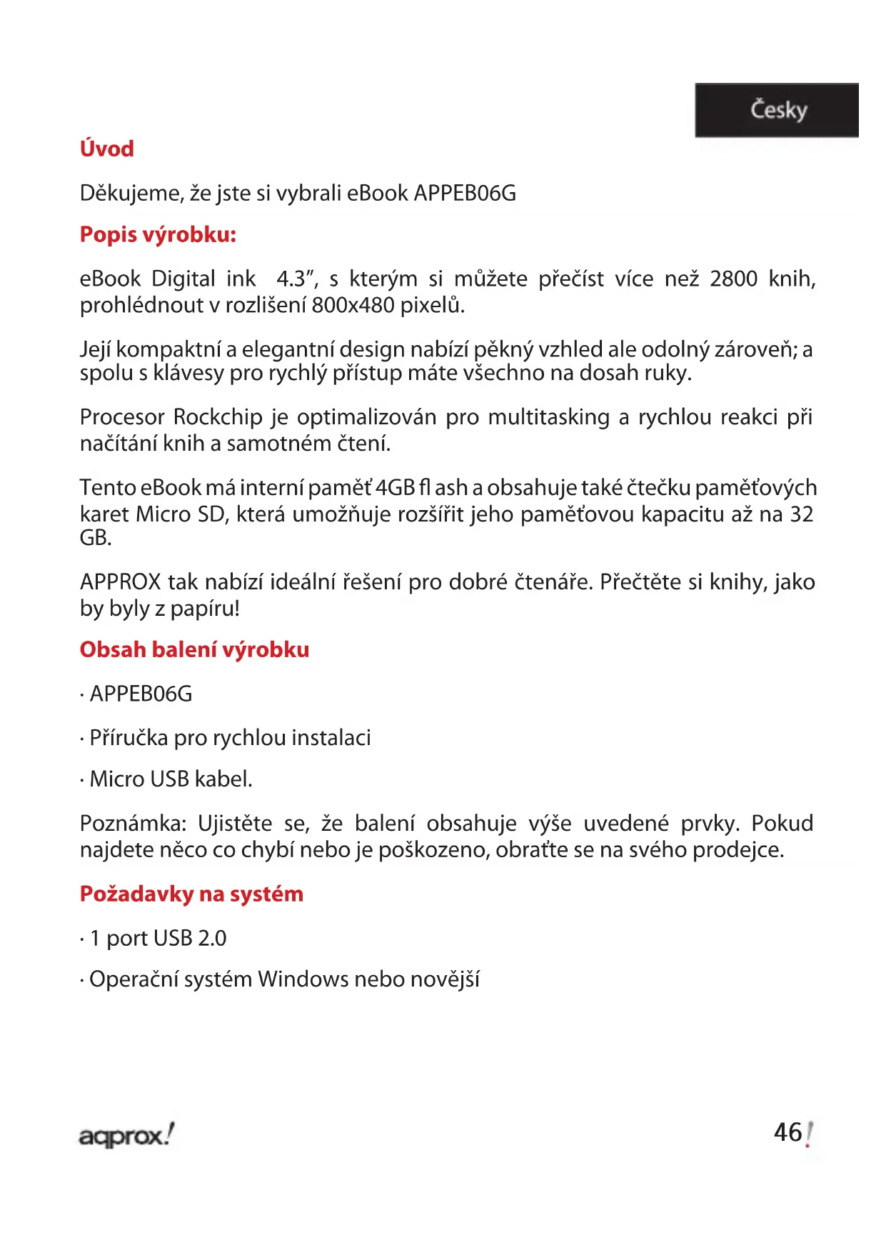 APPEB06G - Elektronická čtečka Approx - Bezplatný návod k obsluze