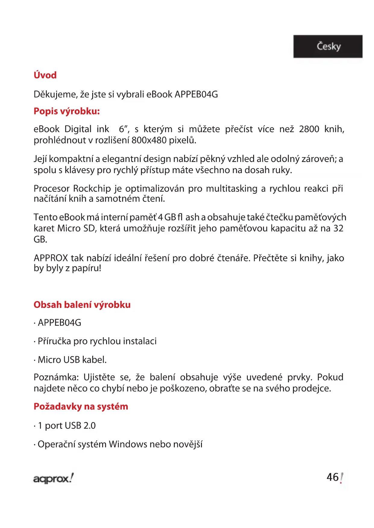 APPEB04G - Elektronická čtečka Approx - Bezplatný návod k obsluze