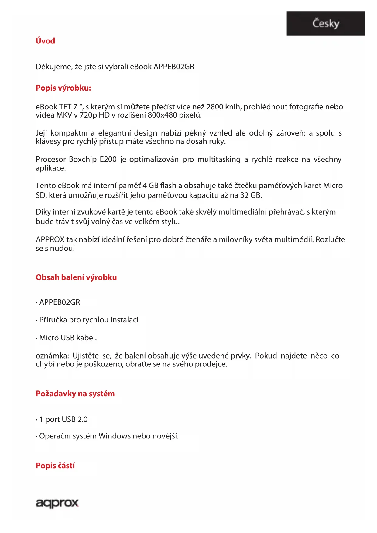 APPEB02GR - Elektronická čtečka Approx - Bezplatný návod k obsluze