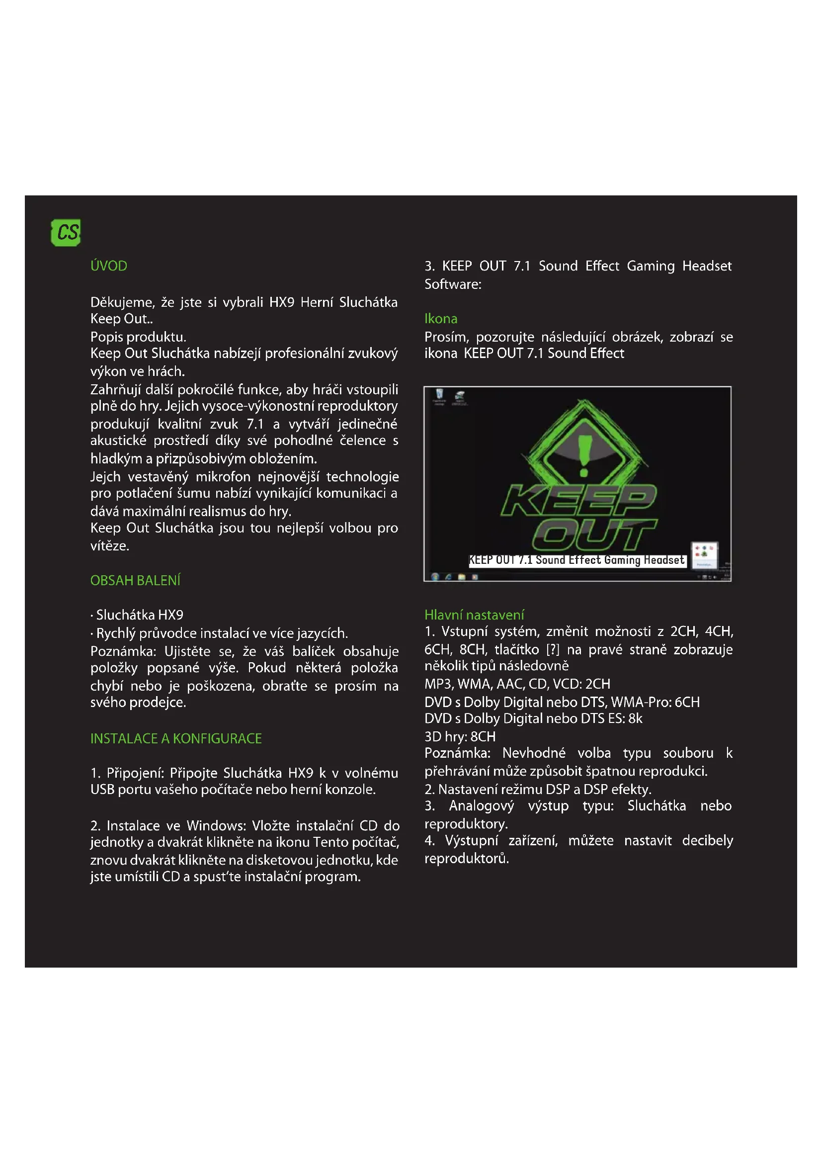 Děkujeme, že jste si vybrali HX9 Herní Sluchátka Keep Out..